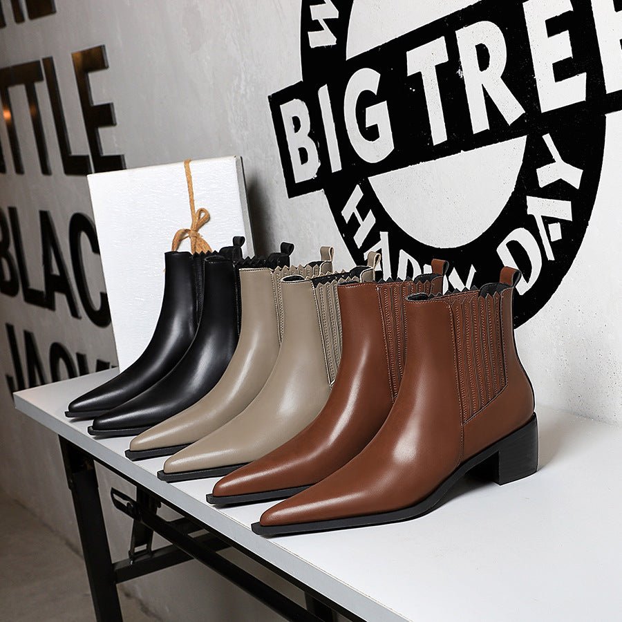 Popular elements: retro and simple European and American British style thick heel wood grain and versatile short barrel Knight boots