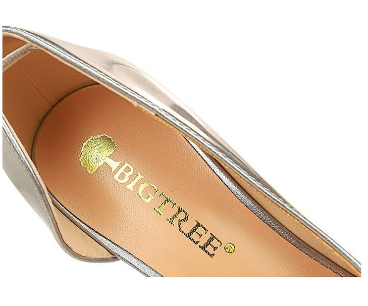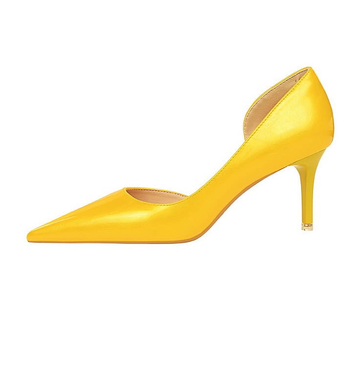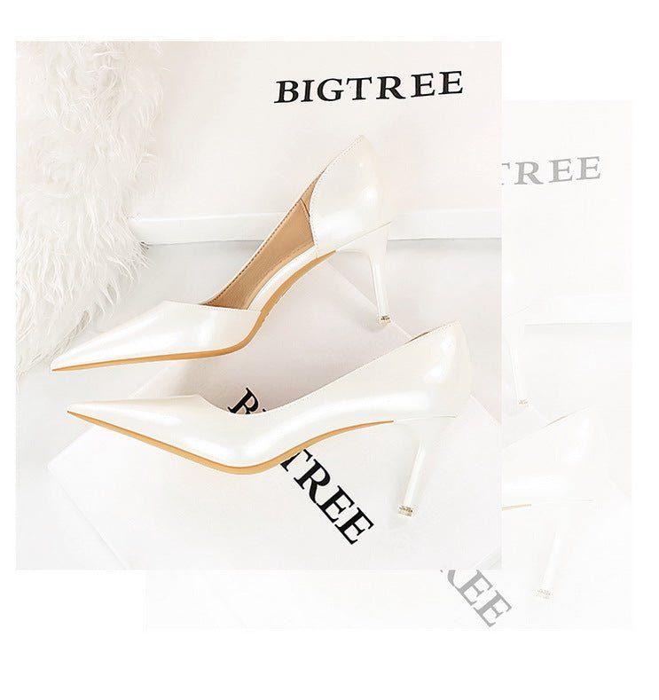 1363-A2 Korean fashion slim banquet fine heel high heel shallow pointed side hollow patent leather women’s shoes single shoes high