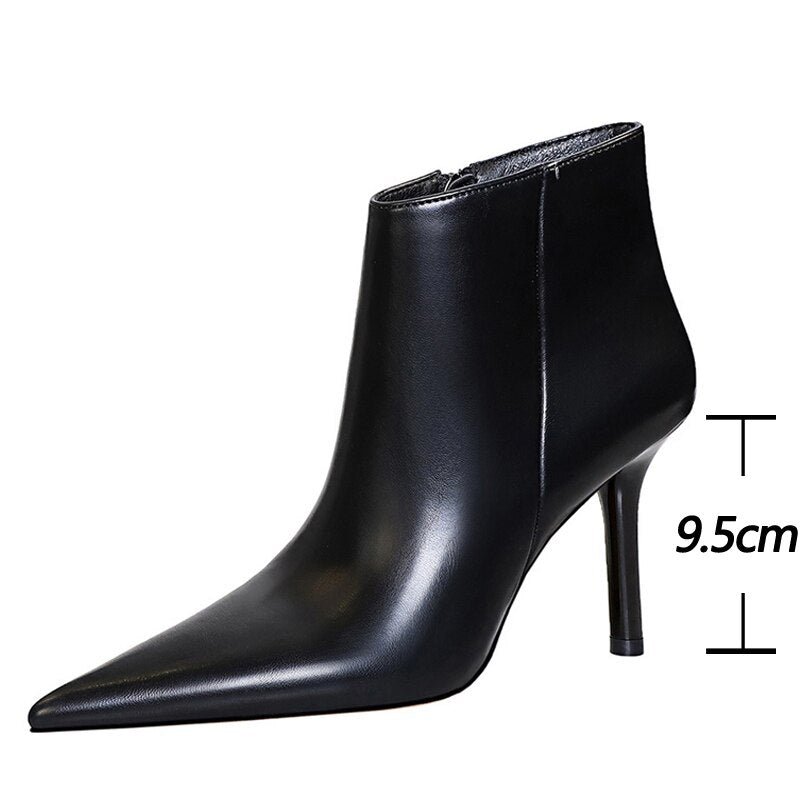 1619-6Warm black women’s ankle boots, thin high heels, sexy high heels-Bigtree shoes