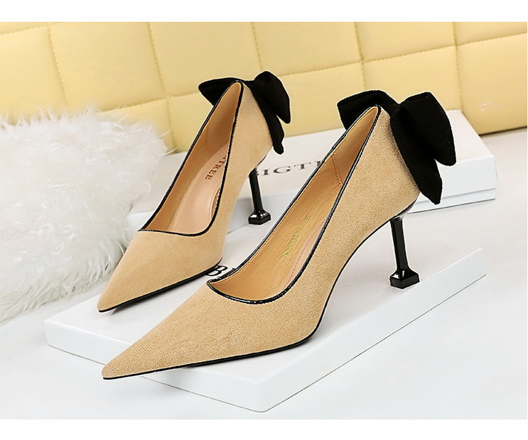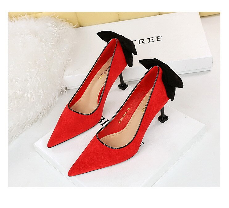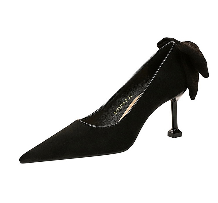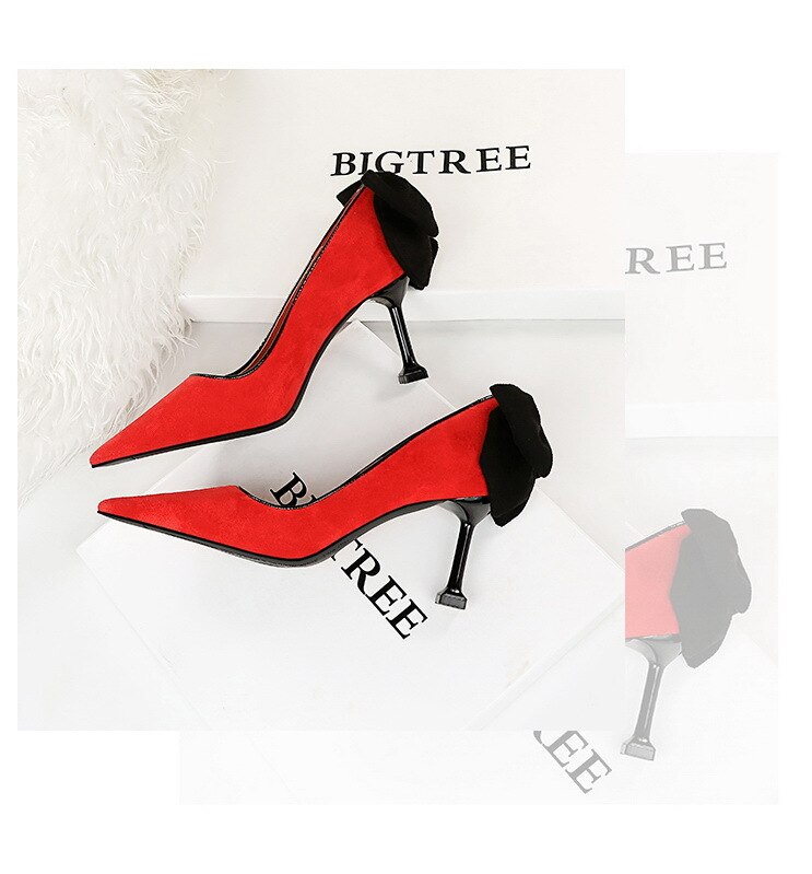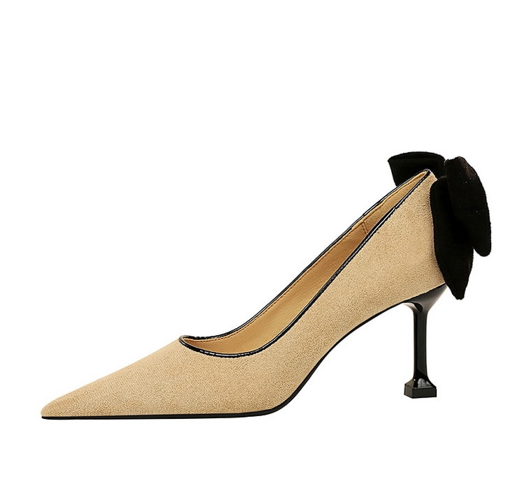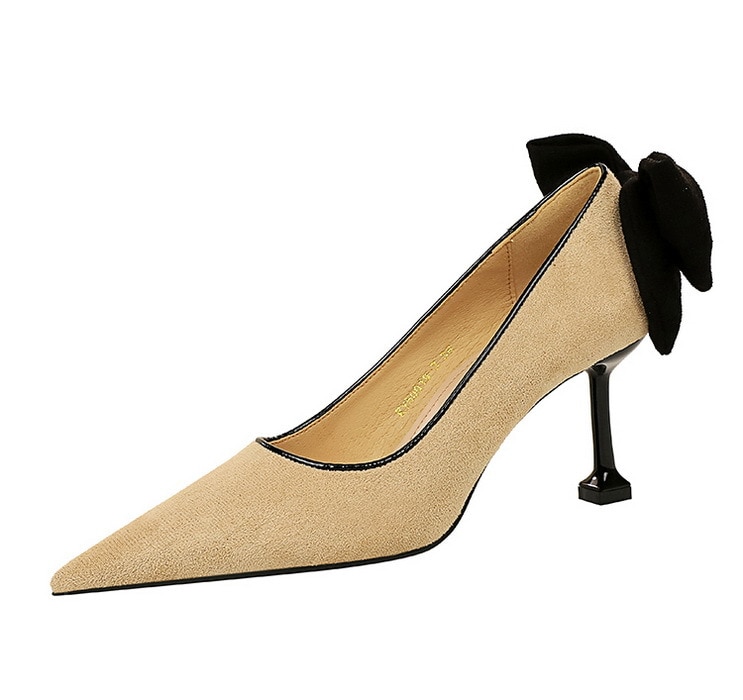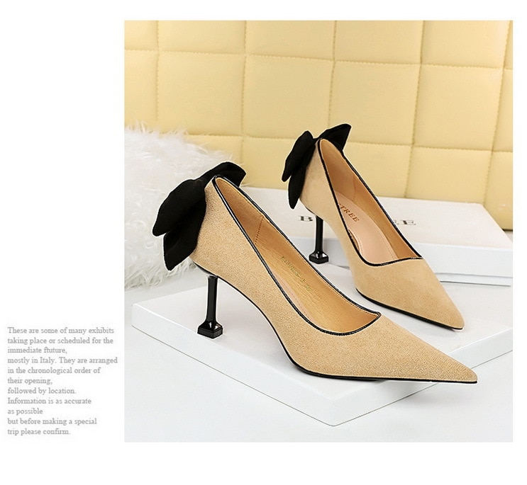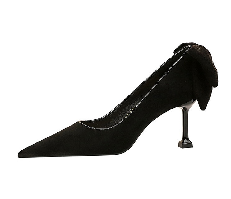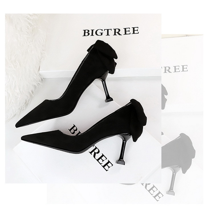 17175-A2Bowknot women’s high heel shoes with pointed suede-Bigtree shoes
