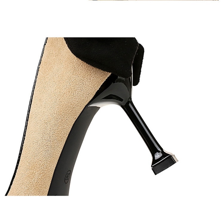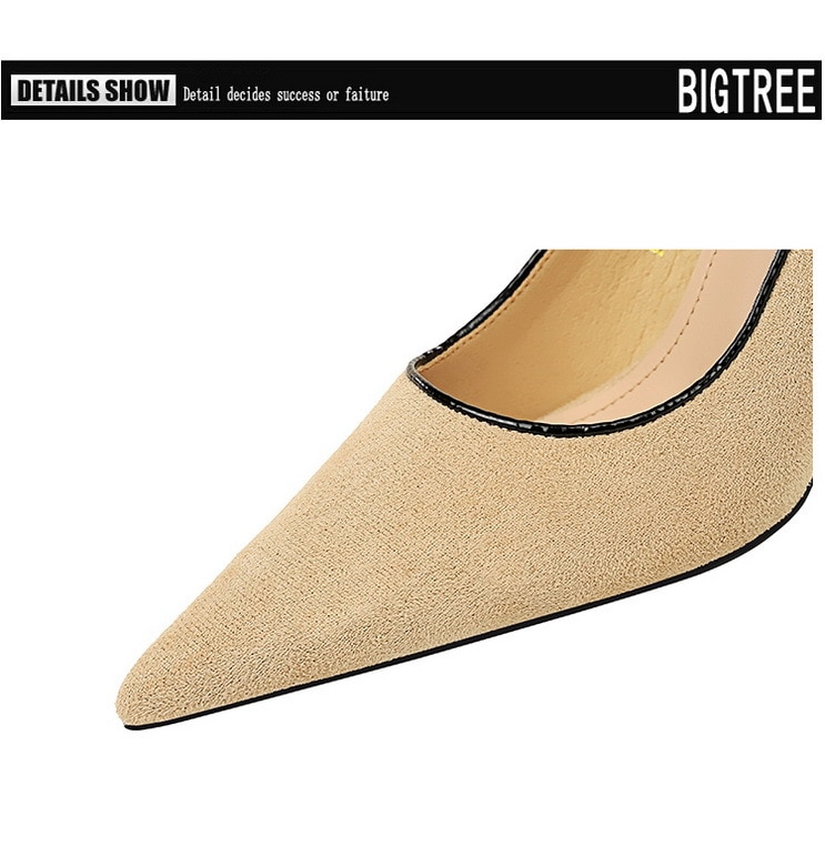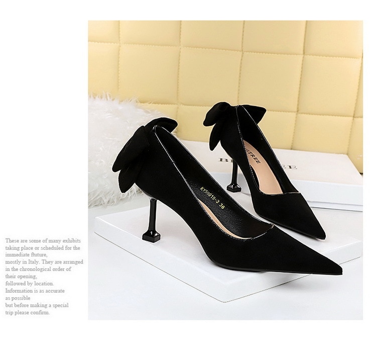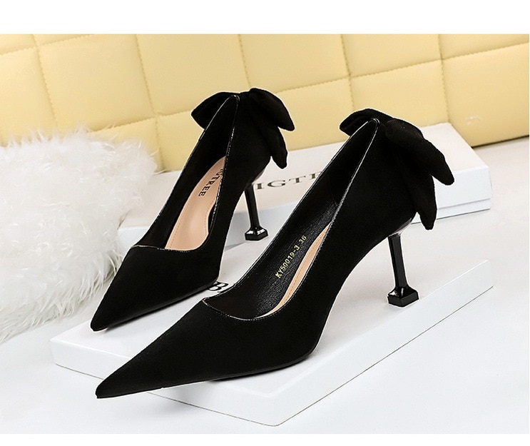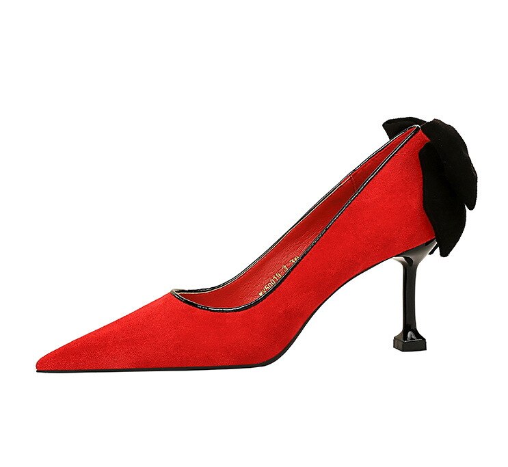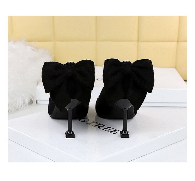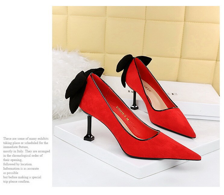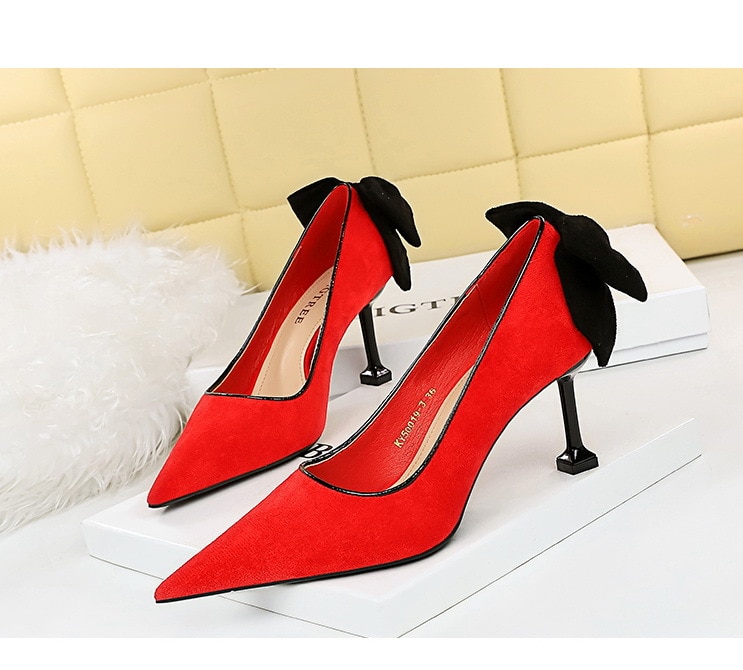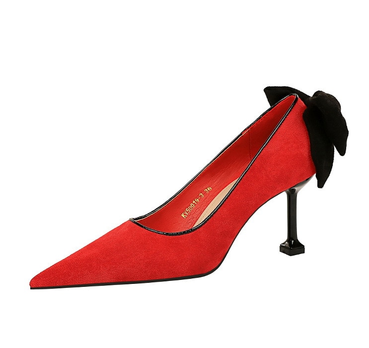 17175-A2Bowknot women’s high heel shoes with pointed suede-Bigtree shoes