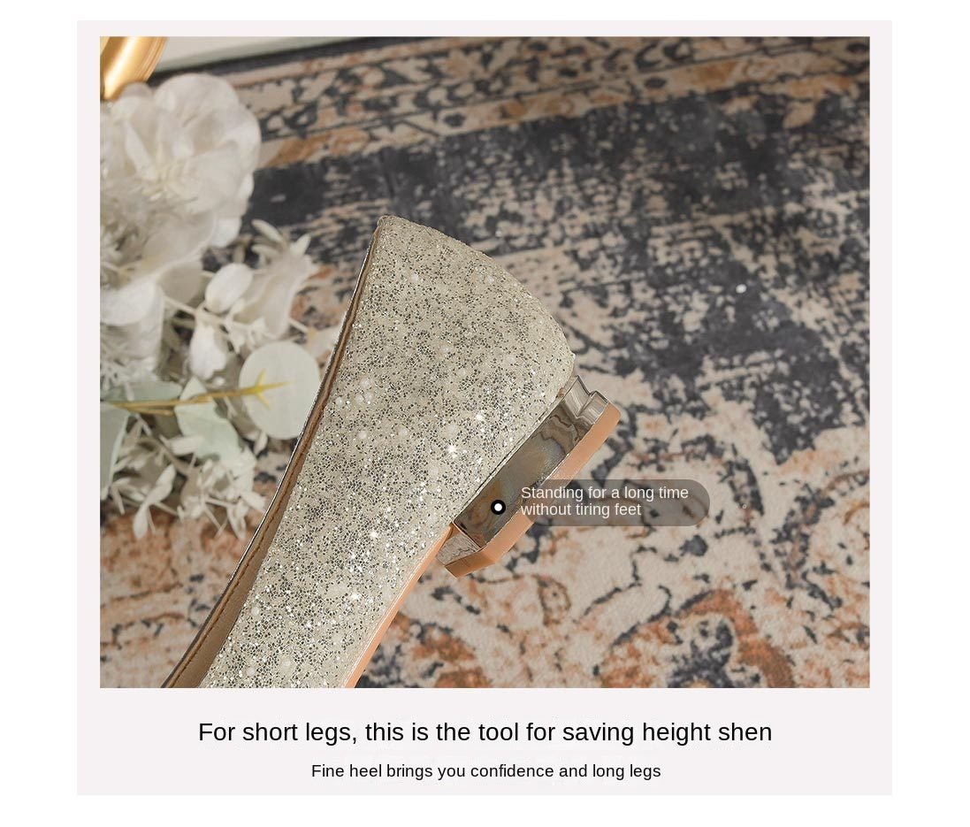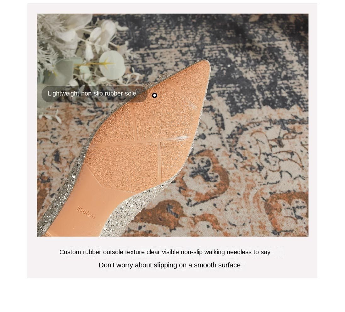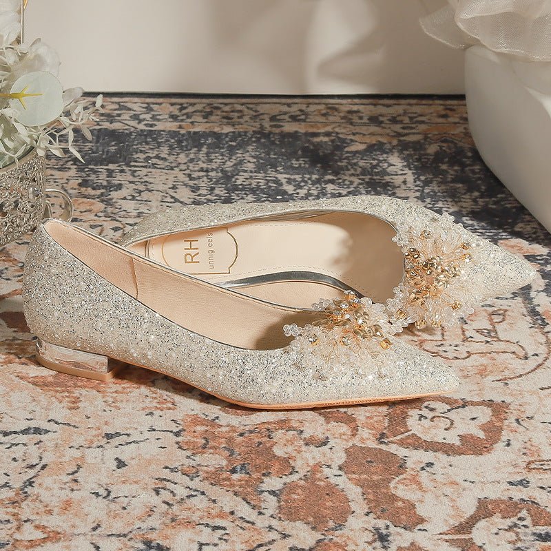 229-10 French Pointed Flat Low Heel Elegant Rhinestone Wedding Shoes Wedding Dress Two-Way Wear