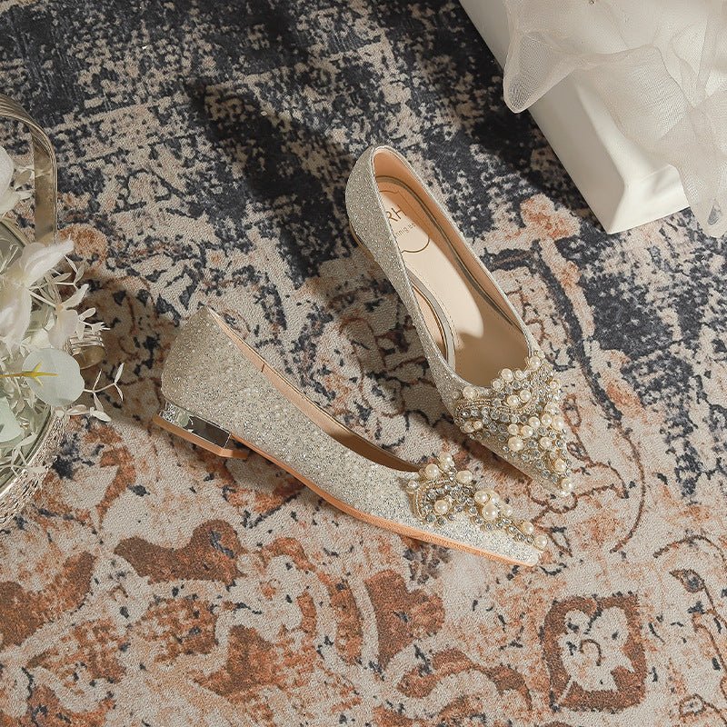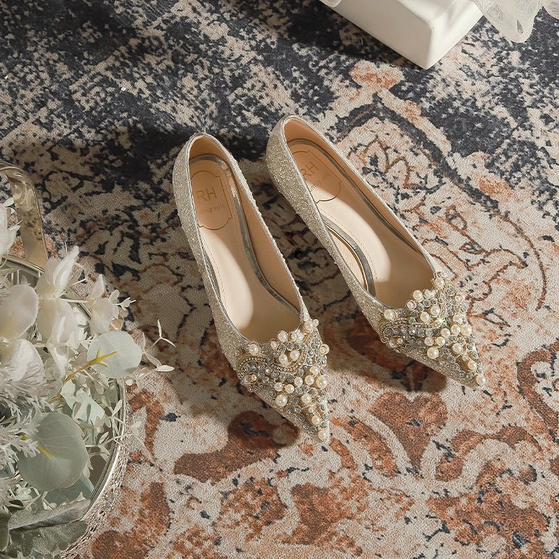 229-12 French Pointed Flat Pregnant Women Can Wear Low Heel Elegant Pearl Wedding Shoes Xiuhe Wedding Dress Two-Way Wear