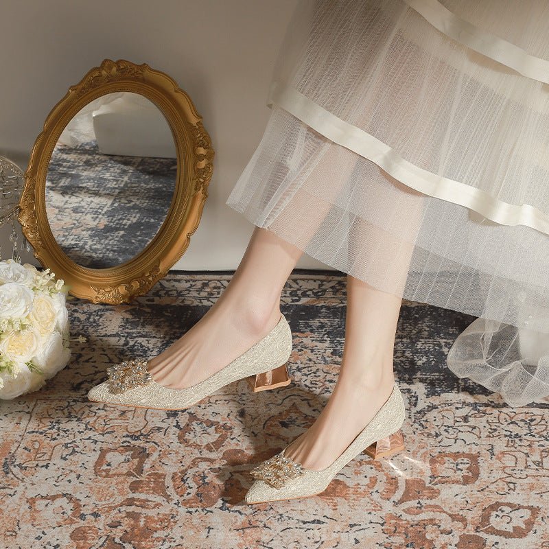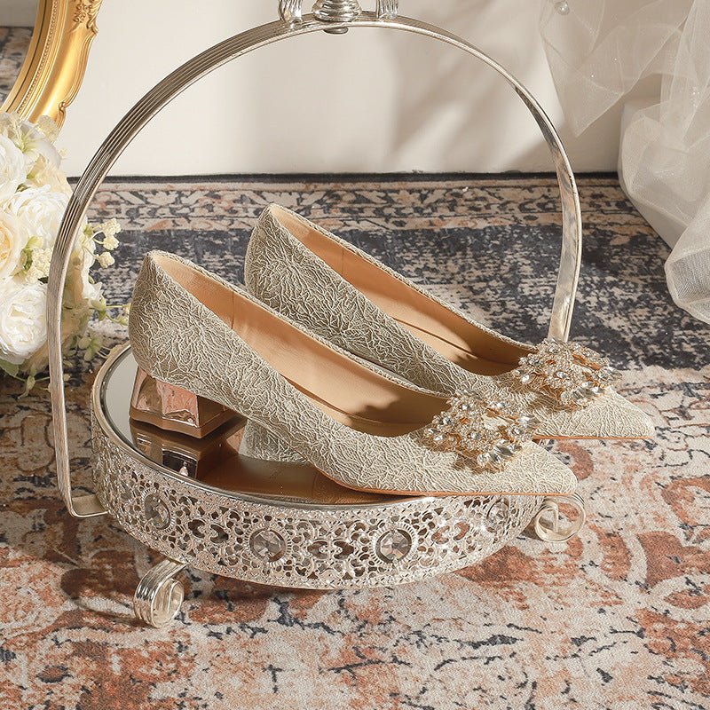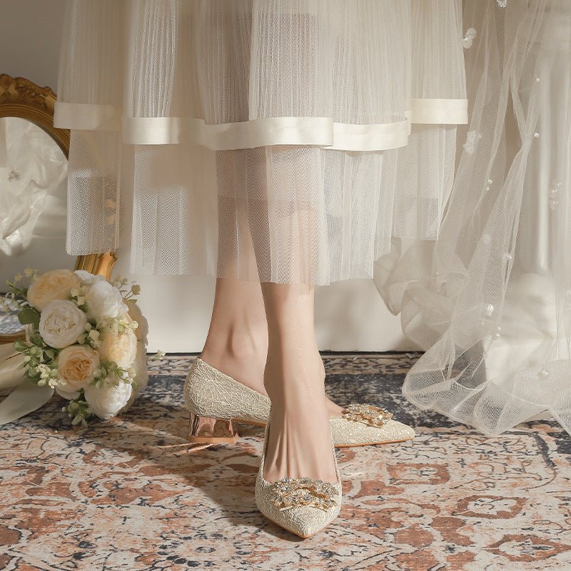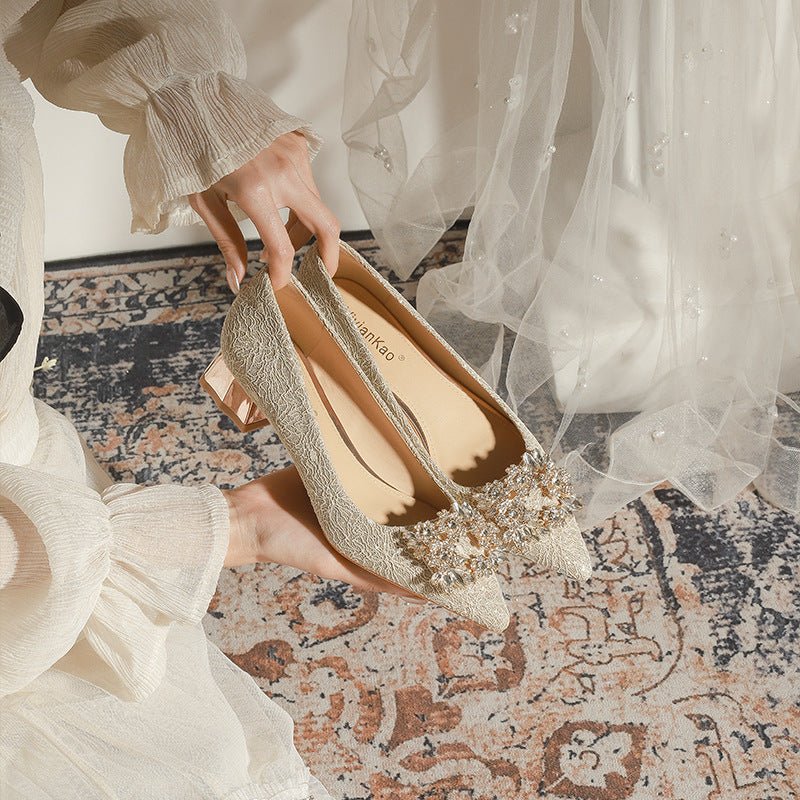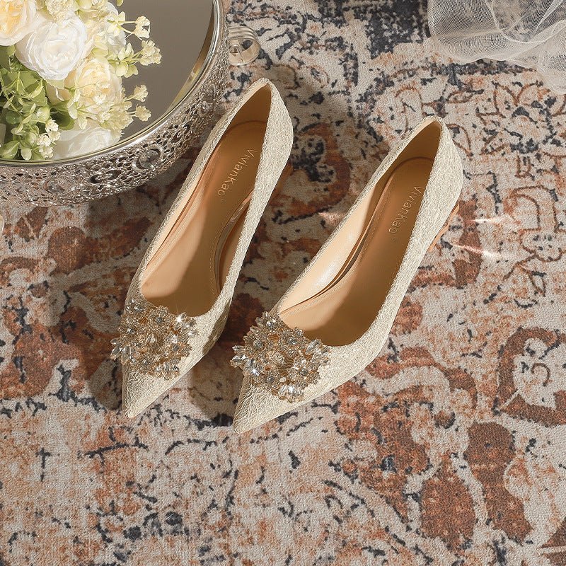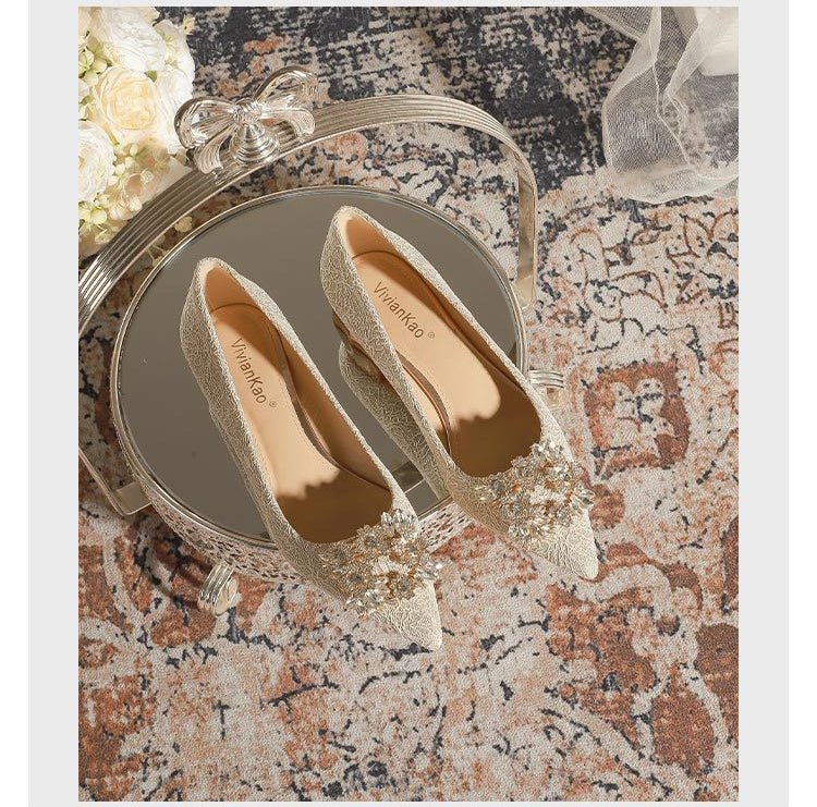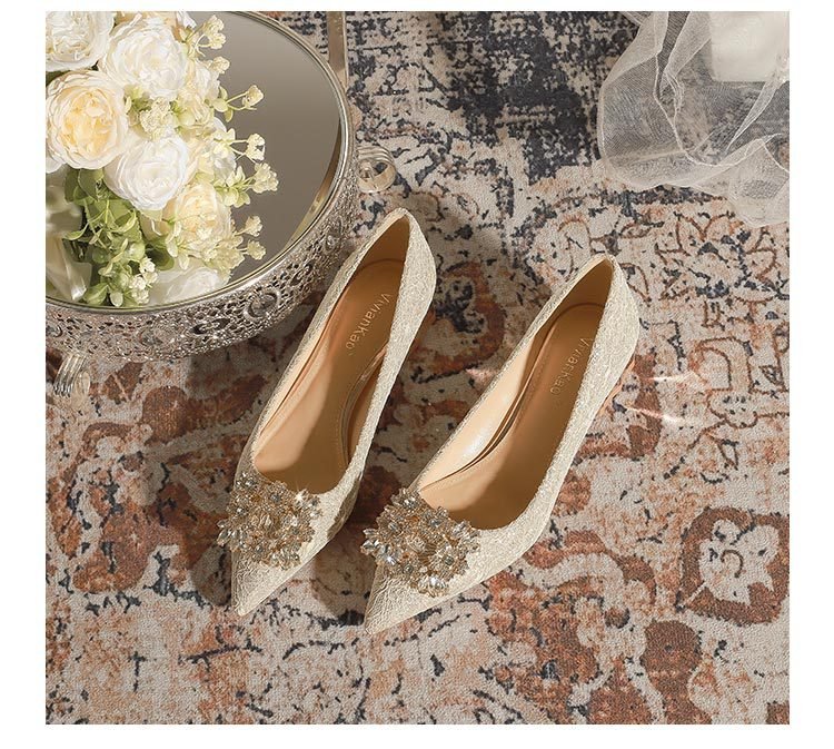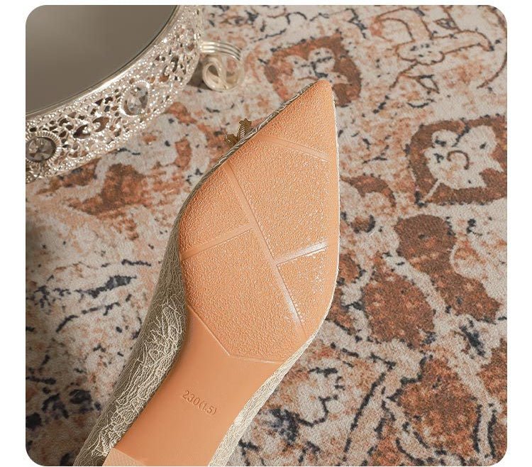3118-6 Bridal Wedding Shoes Not Tired Women’s French Flat Pointed Lace Elegant Single-Layer Shoes Pregnant Women Can Wear Daily