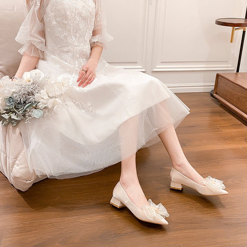 3118-60 Pointed High Heels Women’s Chunky Heel Wedding Shoes High-Grade Xiuhe Wedding Dress Annual Meeting Pumps