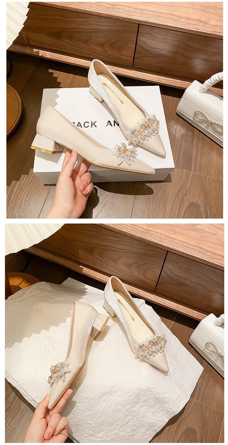 3118-7 Pointed High Heel Shoes Women’s Chunky Heel New Wedding Shoes High-Grade