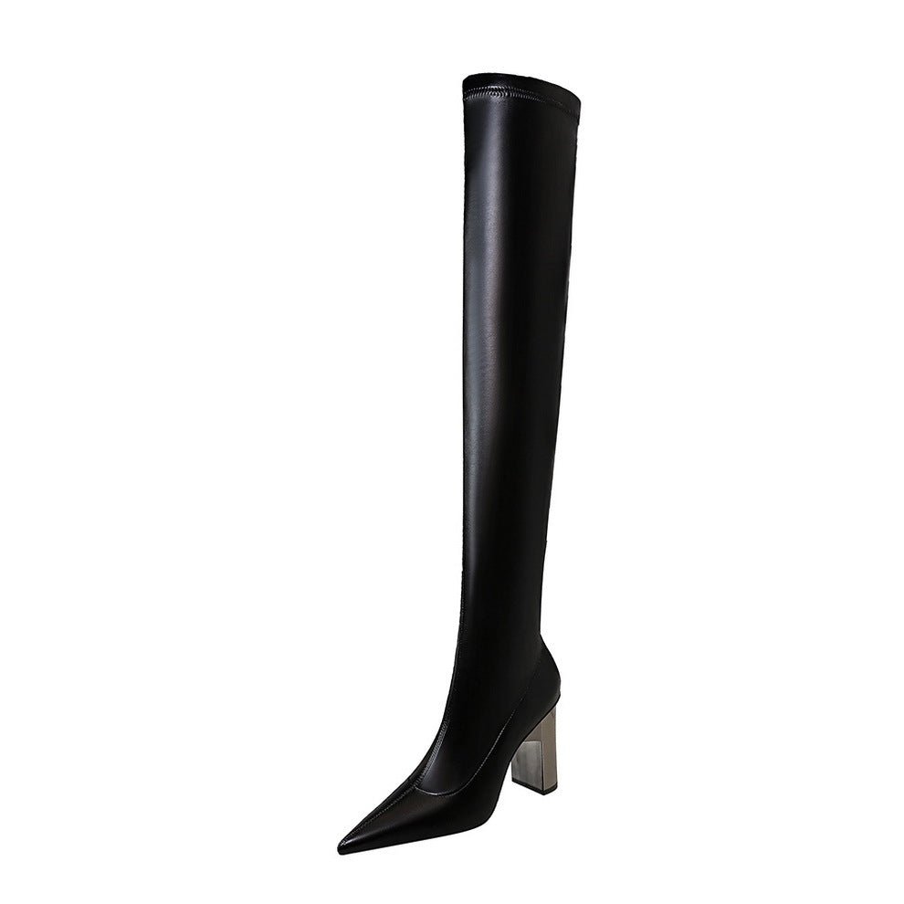 Popular elements: European and American style, fashionable and sexy nightclub, thin metal heel, thick heel, slender, over knee boots