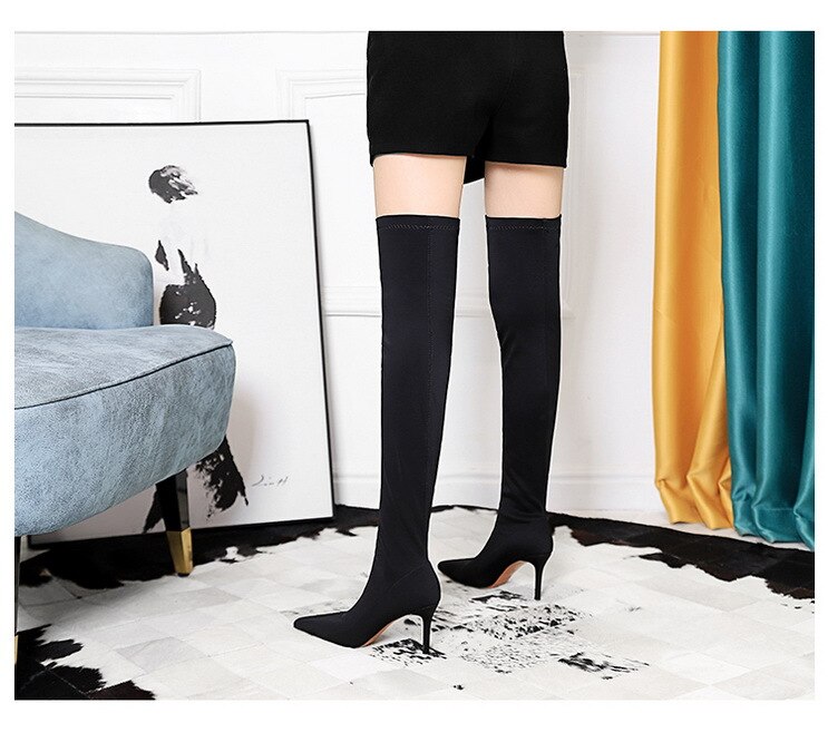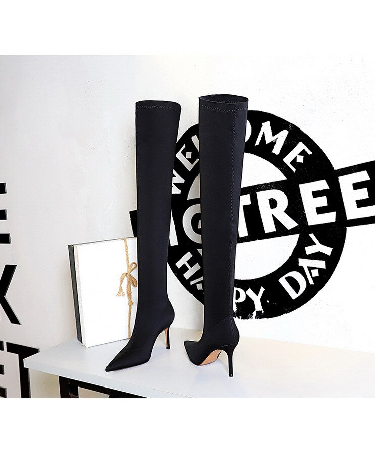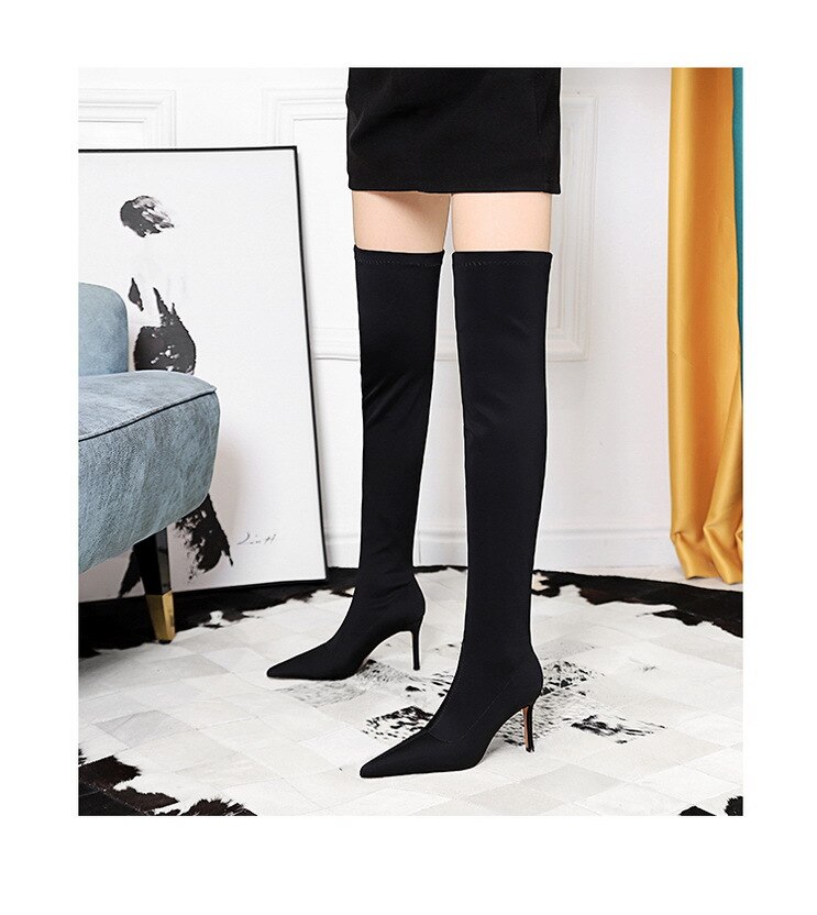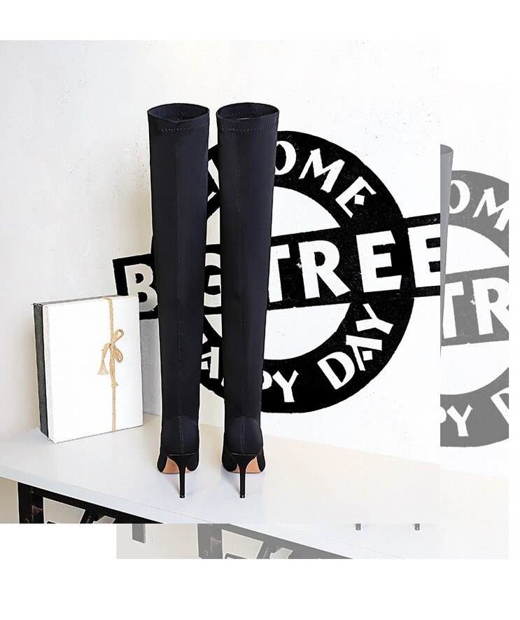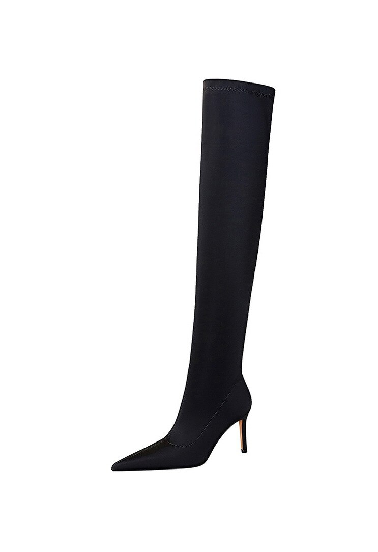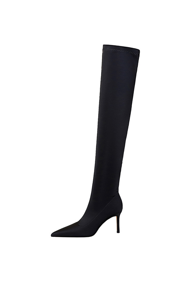 315-A9Over knee boots pointed high heel boots satin elastic boots-Bigtree shoes