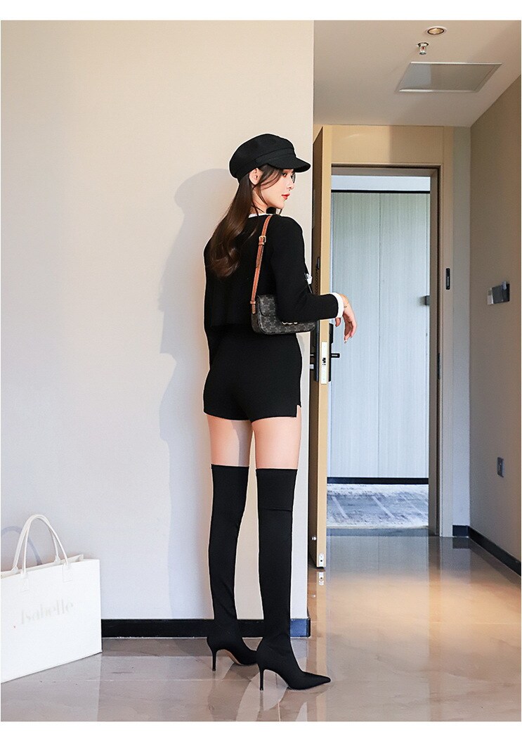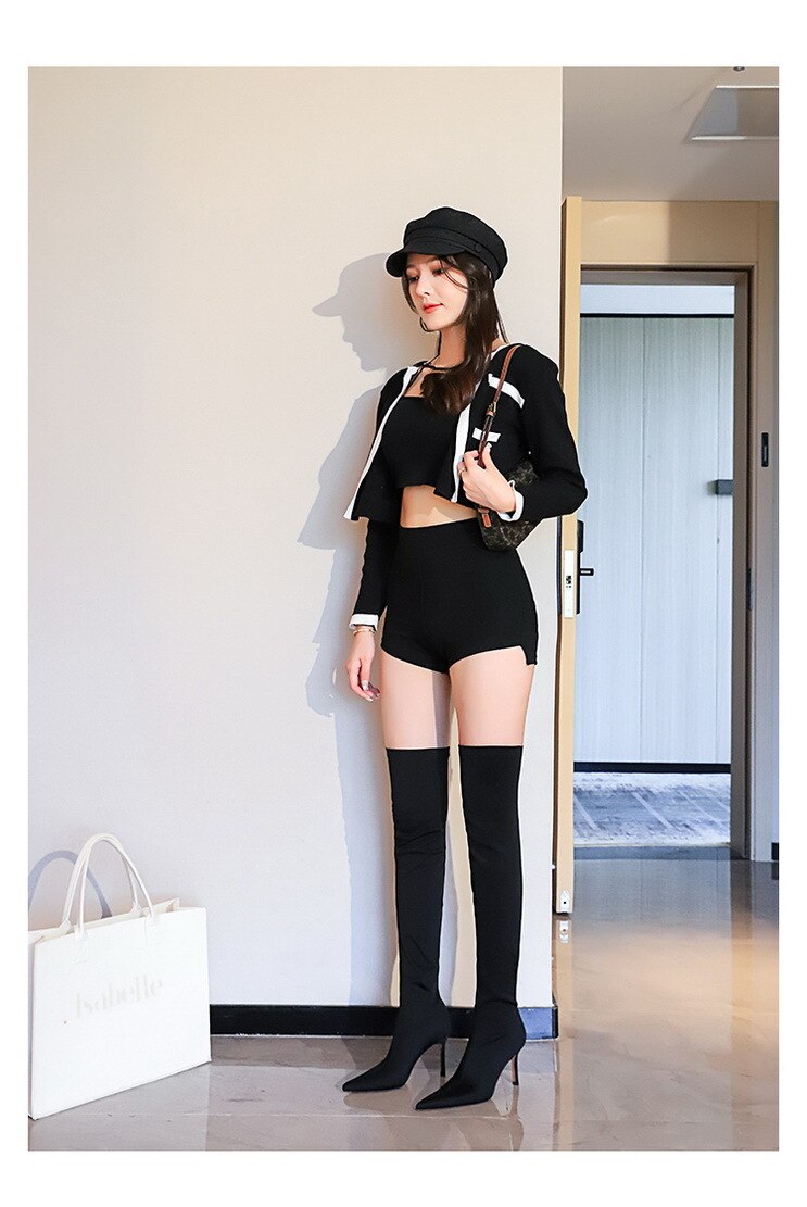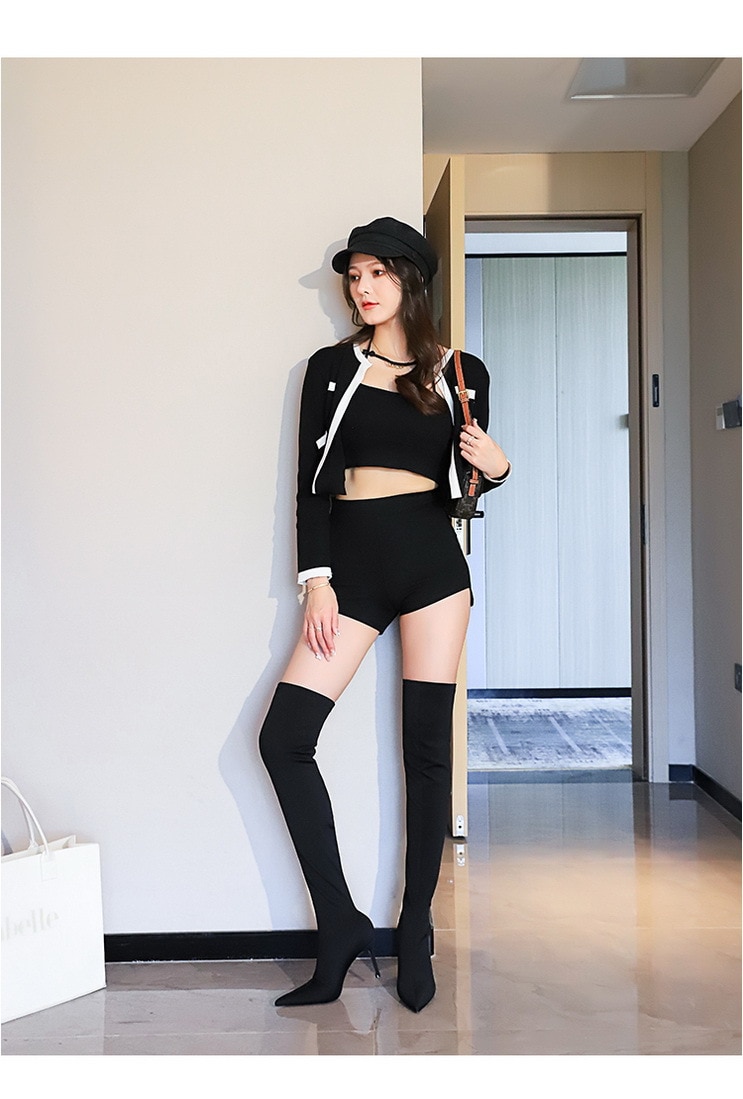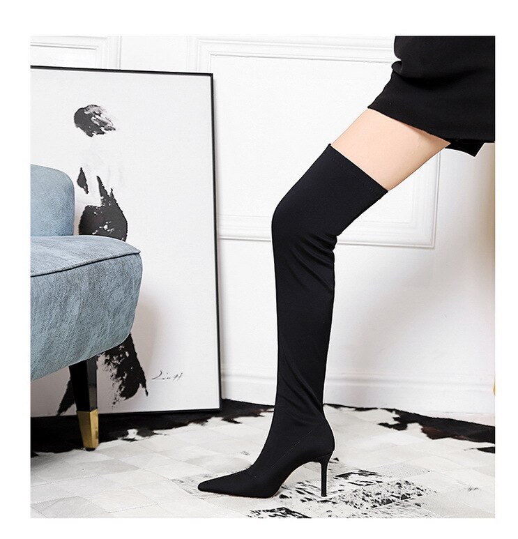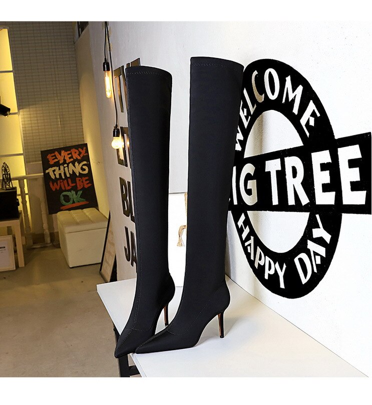 315-A9Over knee boots pointed high heel boots satin elastic boots-Bigtree shoes