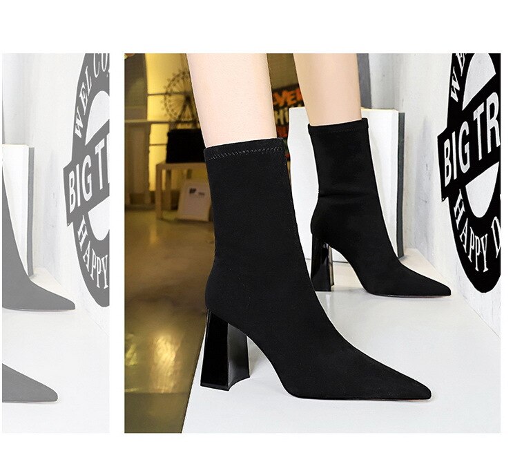 318-8Women’s high heel boots suede thick heel ankle boots-Bigtree shoes