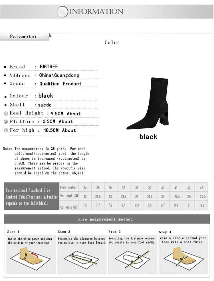 318-8Women’s high-heeled boots suede thick ankle boots pointed shoes-Bigtree shoes