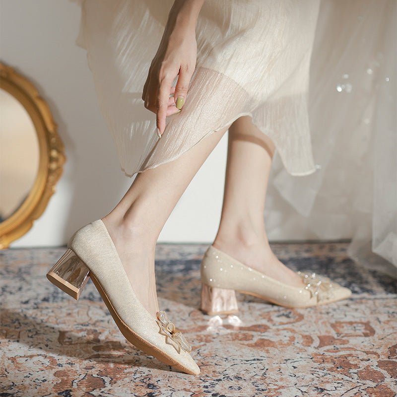 5118-51 Pointed Toe Chunky Heel Shoes Women’s Chunky Heel High Sense Xiuhe Wedding Dress Annual Meeting Pumps