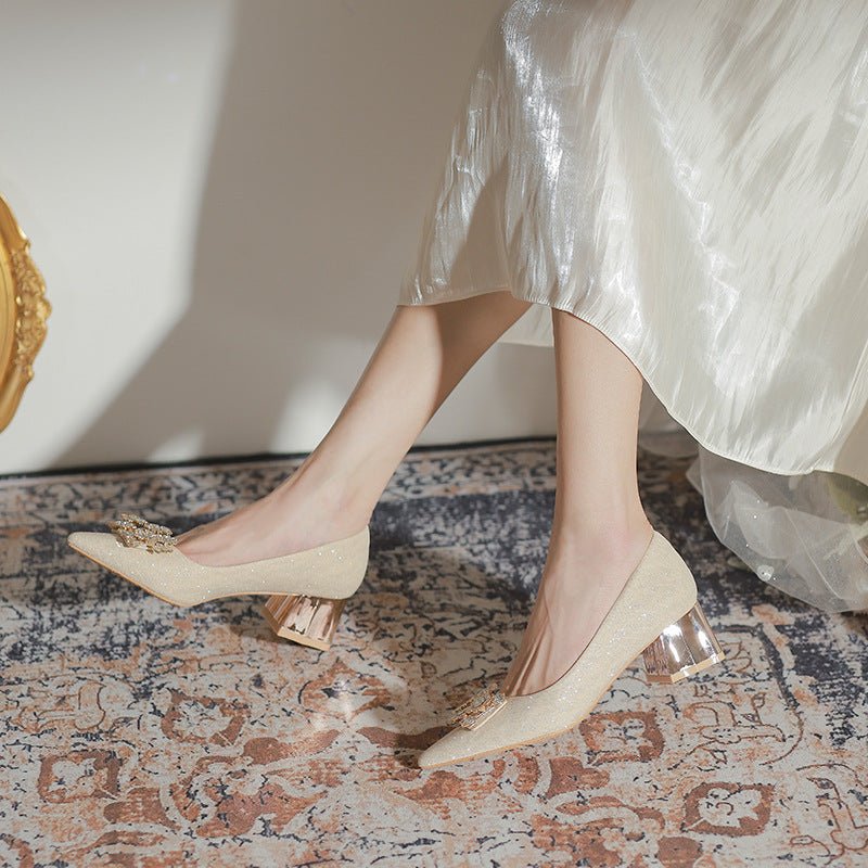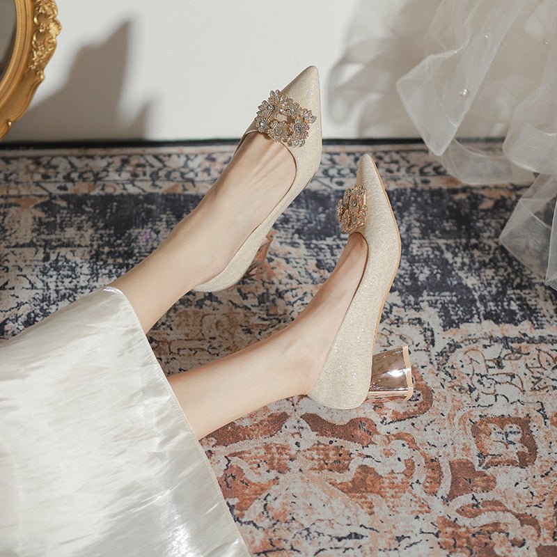 5118-6 Chunky Heel High Heels Women’s New Wedding Shoes High-Grade Wedding Women’s Shoes