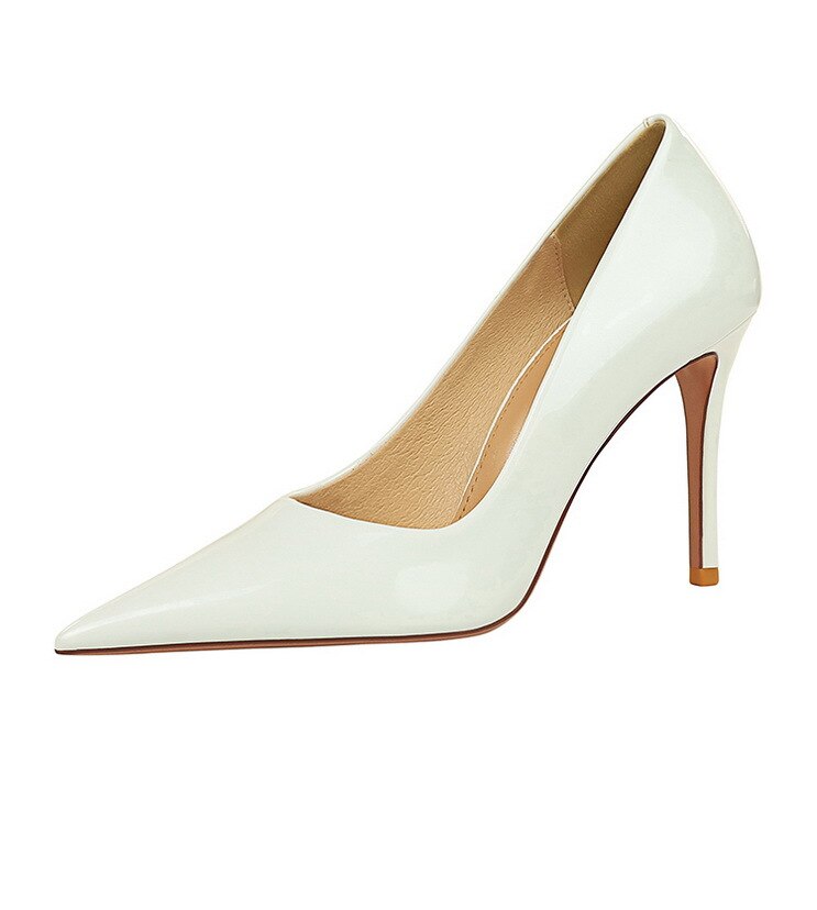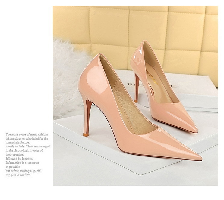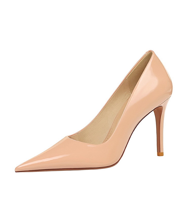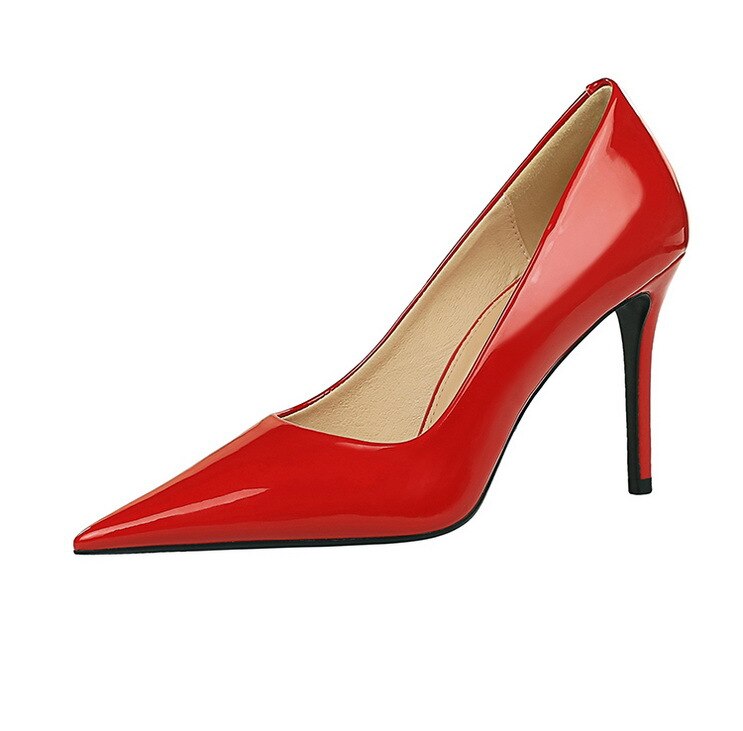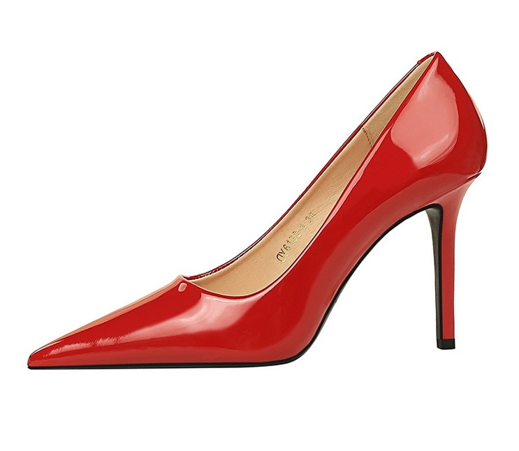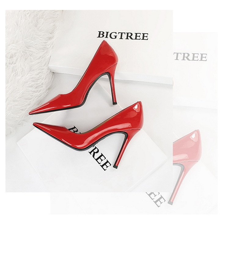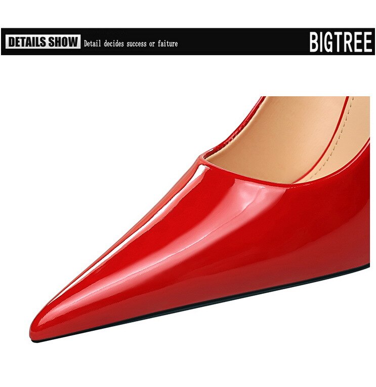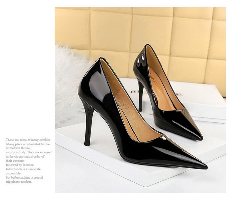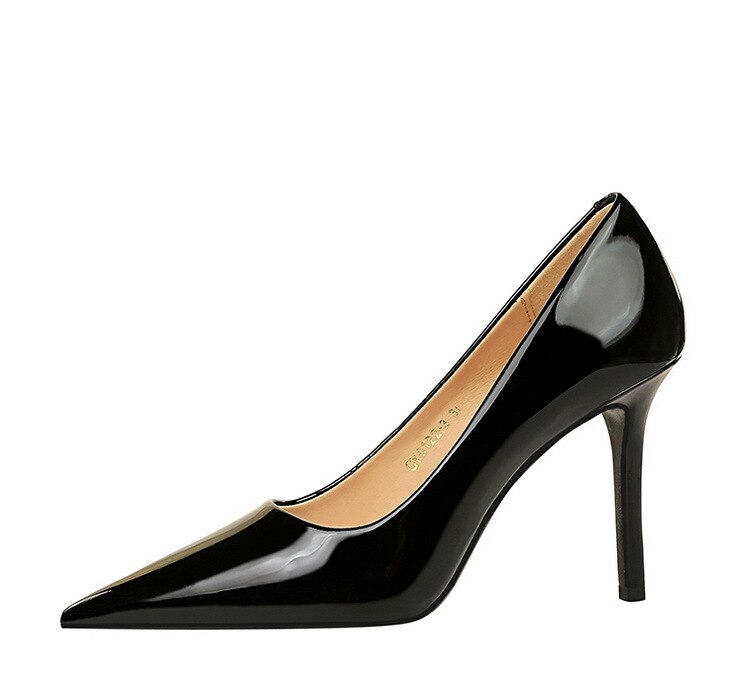 6122-3Lacquer leather high-heeled shoes Feminine thin high-heeled shoes Office shoes-Bigtree shoes