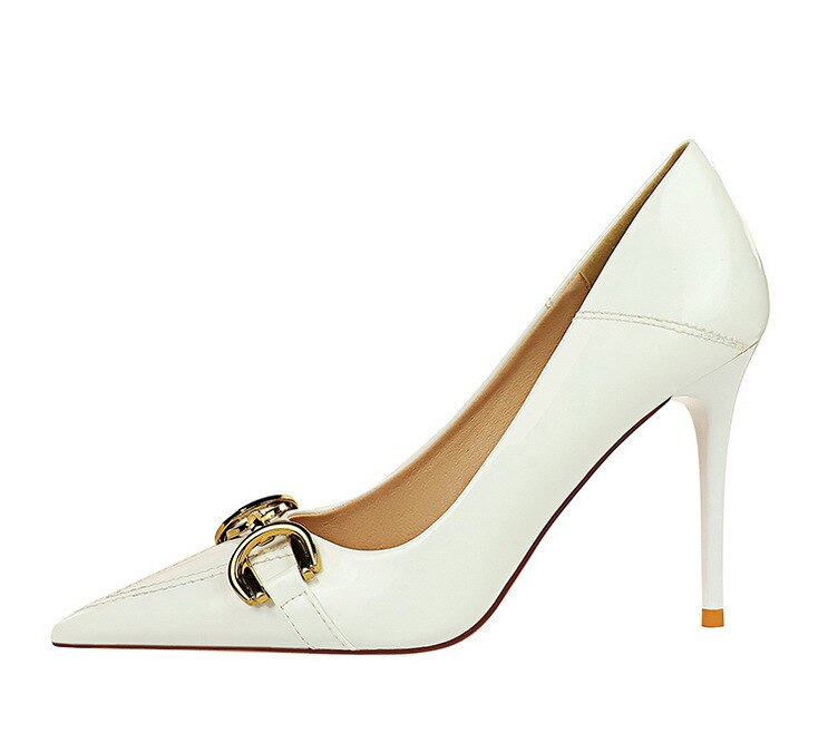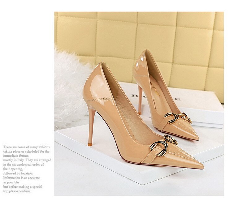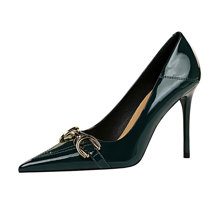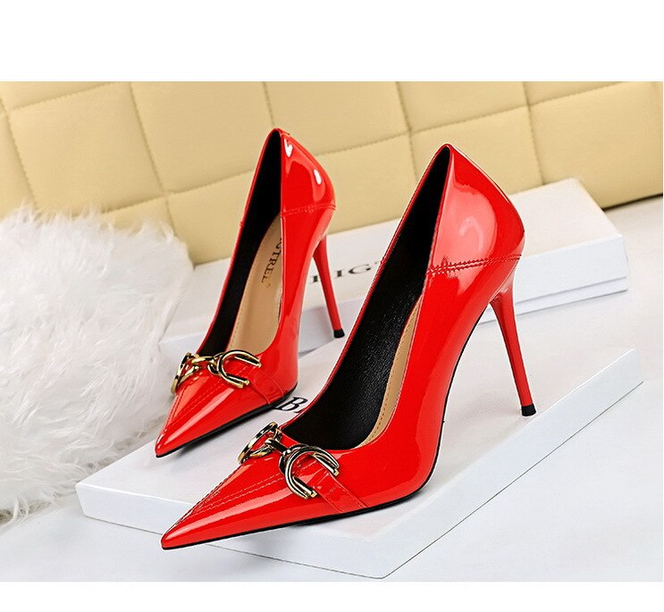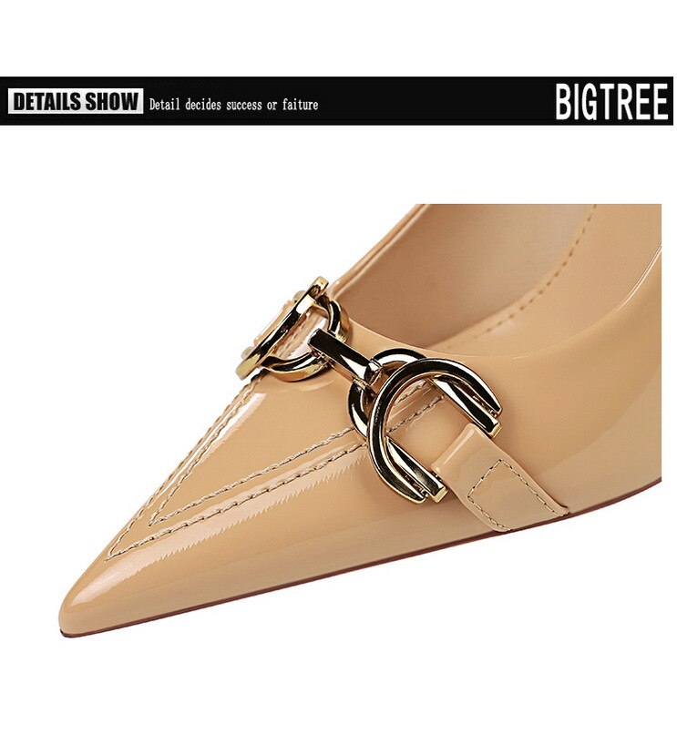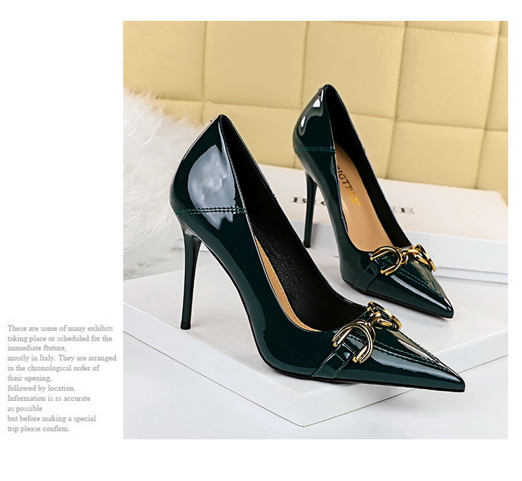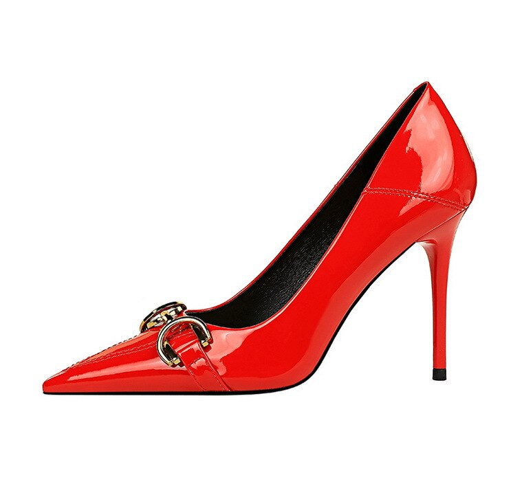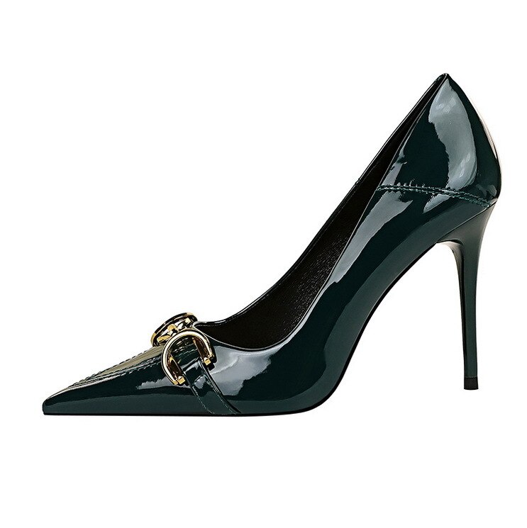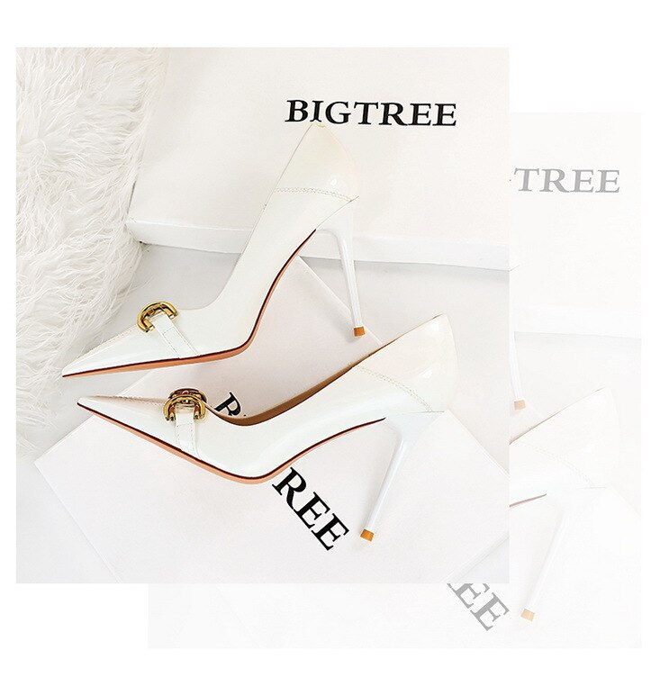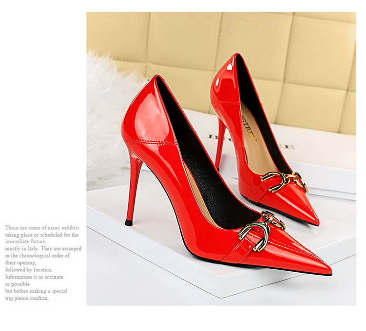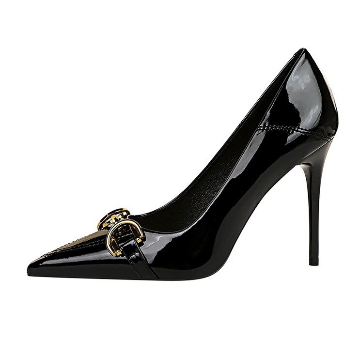 6122-7Women’s high-heeled shoes, thin heel, bright finish, patent leather, shallow mouth, pointed OL high heel-Bigtree shoes
