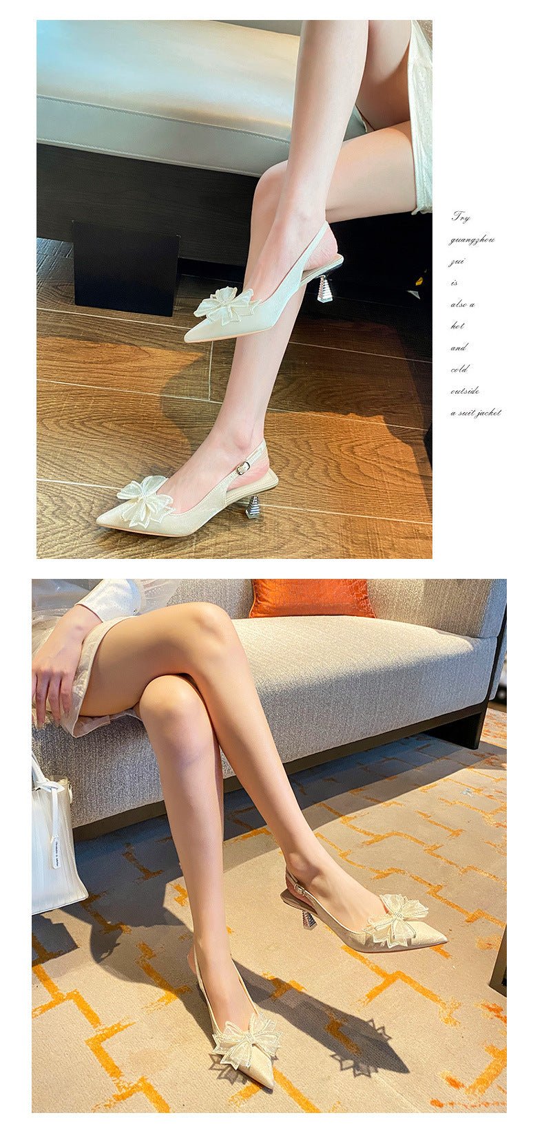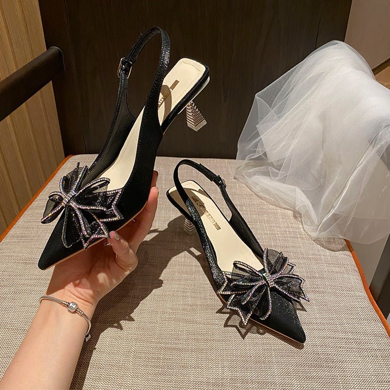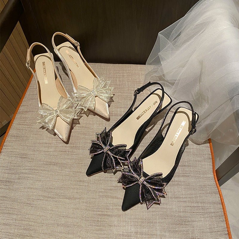 616-51 Pointed High Heels Women’s New Elegant Mesh Butterfly Rhinestone Casual Shoes