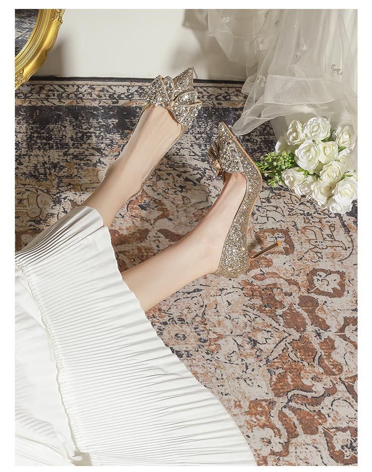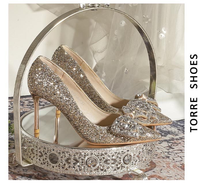 829-145 Pointed High Heel Shoes Women’s Stiletto Heel New Wedding Shoes Bridal Shoes Crystal Shoes 32-43