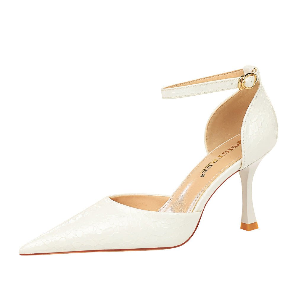 8323-3 European and American Style Banquet Super High Heel Stone Pattern Patent Leather Low-Cut Pointed-Toe Hollowed Hollow Strap Women’s Sandals BIG TREE SHOES