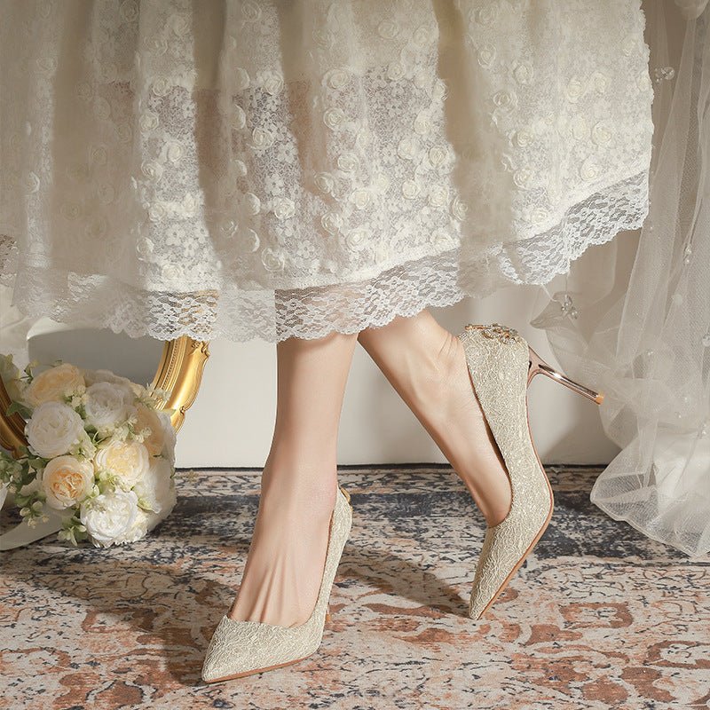 840-1 Heel Rhinestone Crown French Lace Wedding Shoes Bridal Shoes High Heel Shoes Niche High-Grade Stiletto Heel Pumps