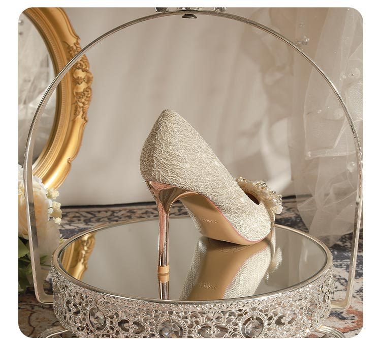840-7 Stick Pearl Crystal Flower Wedding Shoes Xiuhe Wedding Dress Two-Way Wear Niche Not Tired Feet Stiletto Heel Bride Pumps Women