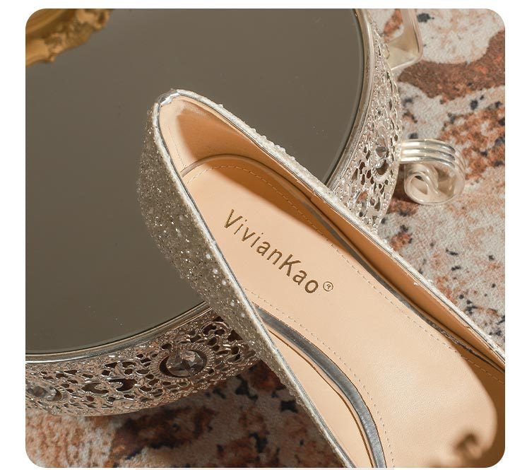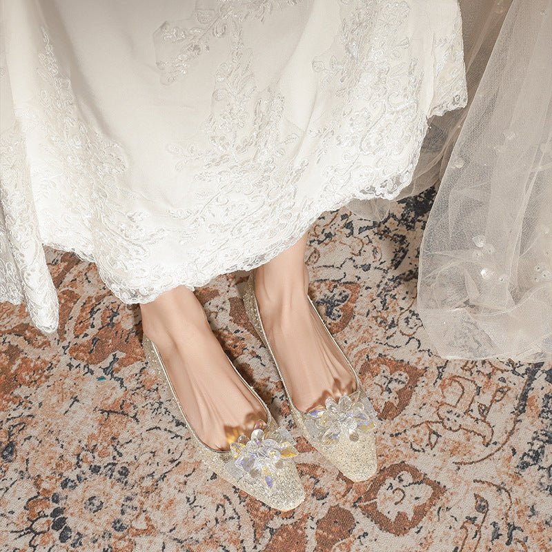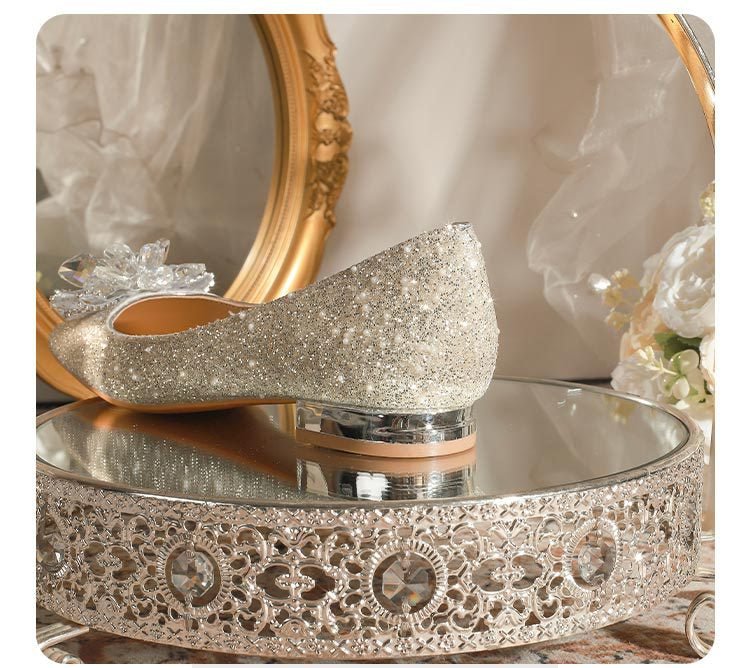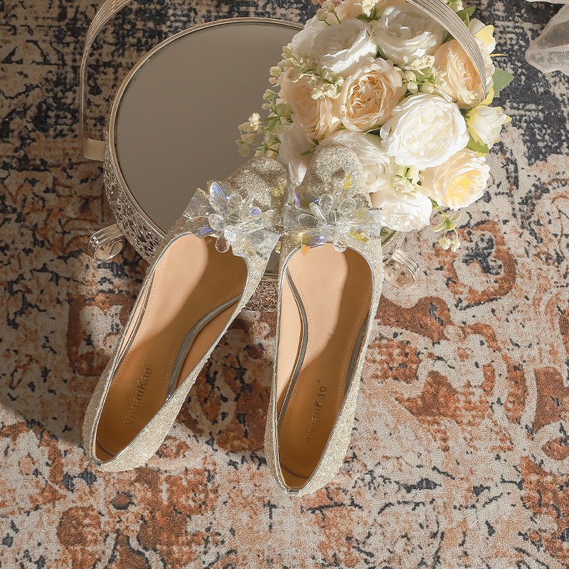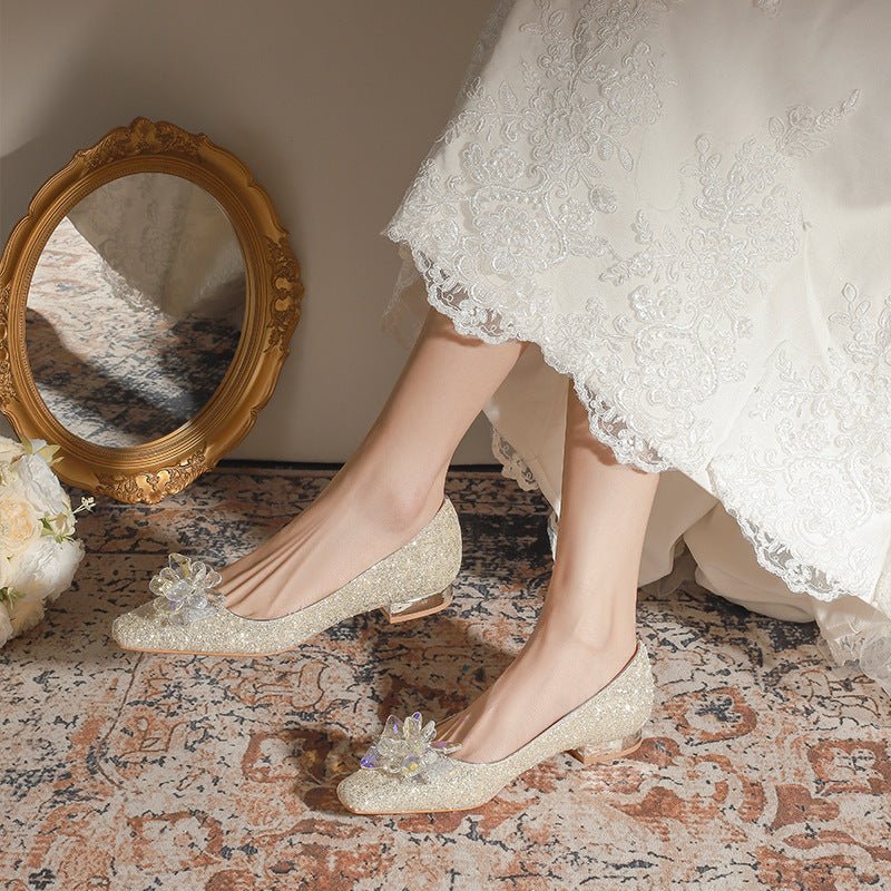 A29-52 Square Head Pearl Flat Chunky Heel Everyday Joker Niche Low Heel High Sense Bridesmaid Shoes Women