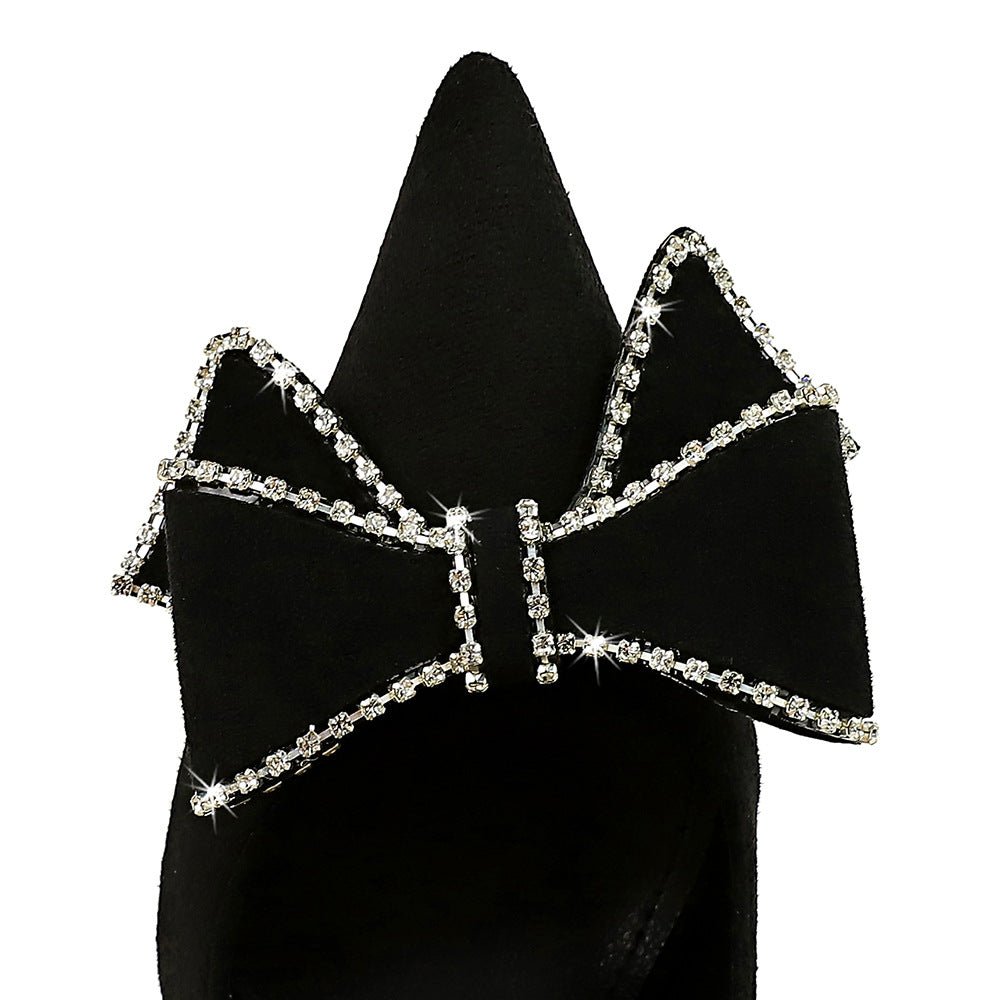 BIG TREE 825-H7 European and American Style Fashion Slimming Banquet Women’s Shoes High Heels Shallow Mouth Pointed Toe Suede Rhinestone Bow Pumps