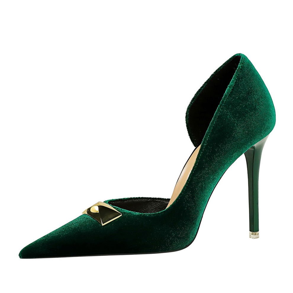 Popular Elements: European and American Style Fashion Sexy Nightclub Slimming Banquet High Heels Super High Heel Korean Velvet West Velvet Side Hollow out