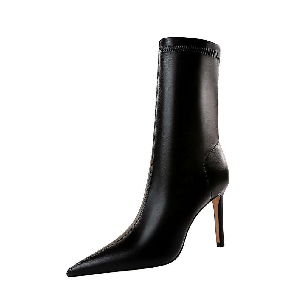 BIG TREE SHOES 315-12 European and American Style Winter Fashion Simple Stiletto Heel Pointed Toe Sexy Nightclubs Thinner Short Boots Female Skinny Boots