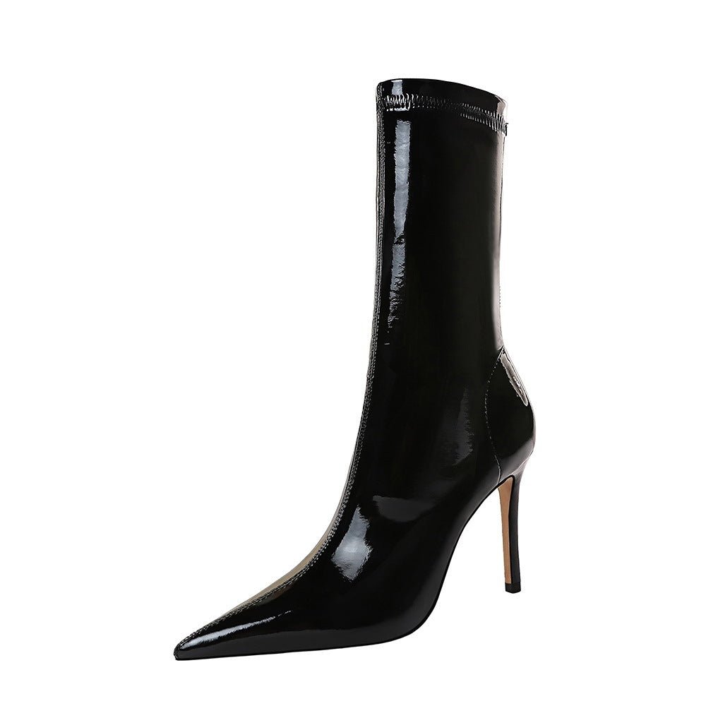 BIG TREE SHOES 315-13 European and American Fashion Sexy Nightclubs Thinner Shiny Patent Leather Stretch Slimming Pointed Ankle Boots Winter Skinny Boots