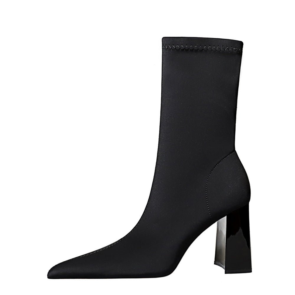 BIG TREE SHOES 318-1 European and American Sexy Slim Fit Thick Heel Super High Heel Stretch Lycra Pointed Toe Skinny Boots Female Boots Ankle Boots