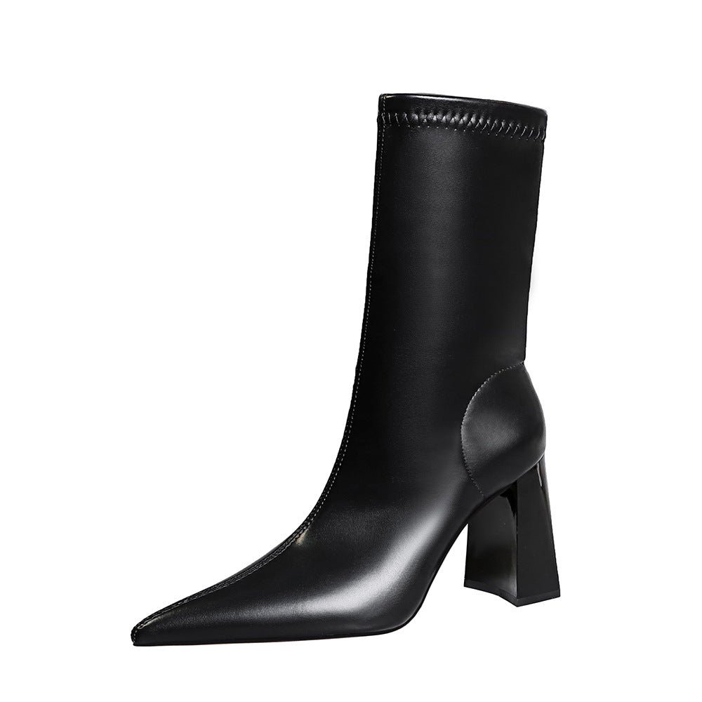 BIG TREE SHOES 318-12 European and American Fashion Sexy Nightclubs Thinner Thick Heel Super High Heel Pointed Toe Winter Short Boots Female Boots Ankle Boots
