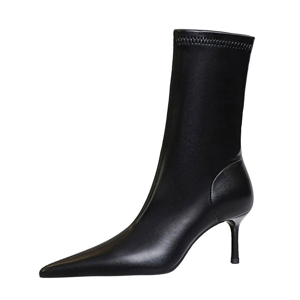 big tree shoes 328-12 Retro European American Style Winter Fashion Simple Mid Heel Stiletto Heel Pointed Toe Pedicure Slimming Banquet Women’s Boots Short Boots
