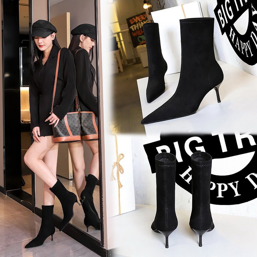 BIG TREE SHOES 328-8 European and American Fashion Minimalist All-Match Female Boots Stiletto Heel Pointed Toe Suede Pedicure Slimming Short Booties