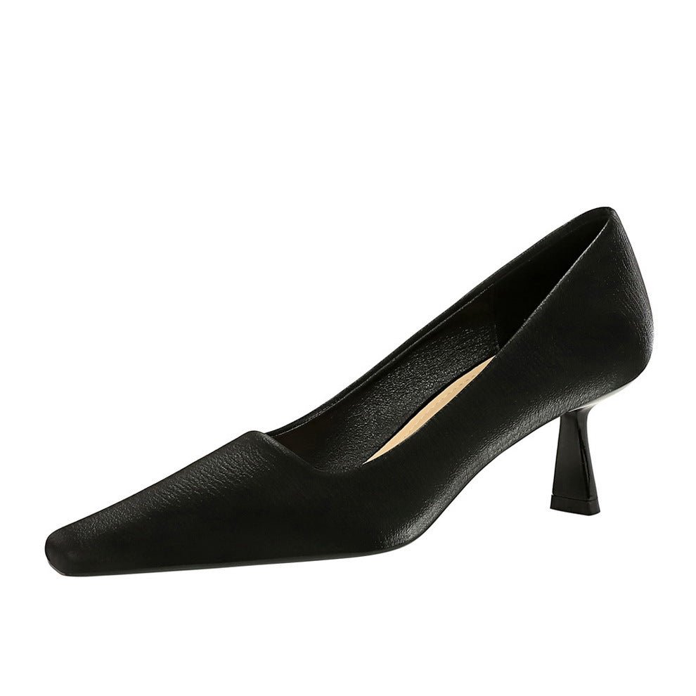 big tree shoes 6183-5 European and American Style Retro Women’s Shoes Stiletto Heel Shallow Mouth Square Toe Simple Pedicure Slimming Spring and Autumn Single-Layer Shoes Women