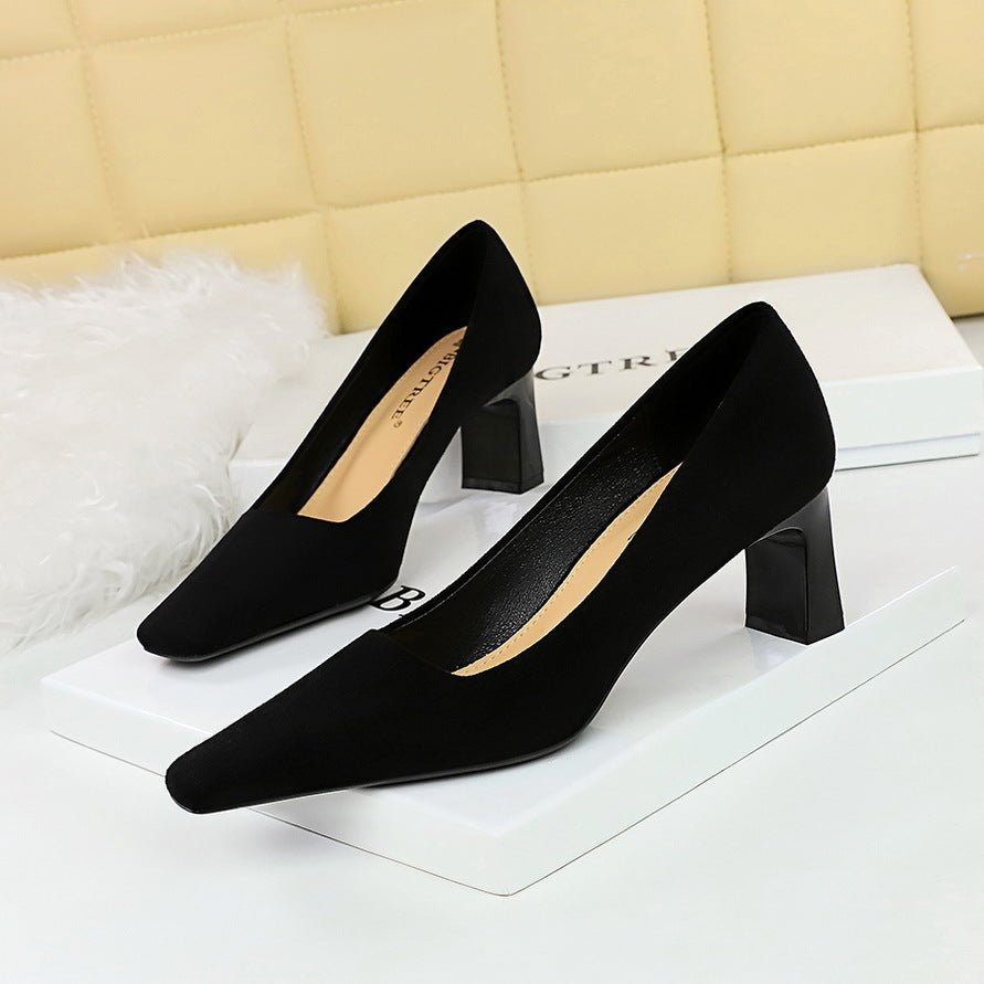 Popular Elements: Korean Style Fashionable Simple Comfortable Chunky Heel Business Ol Square Toe All-Match High Heels