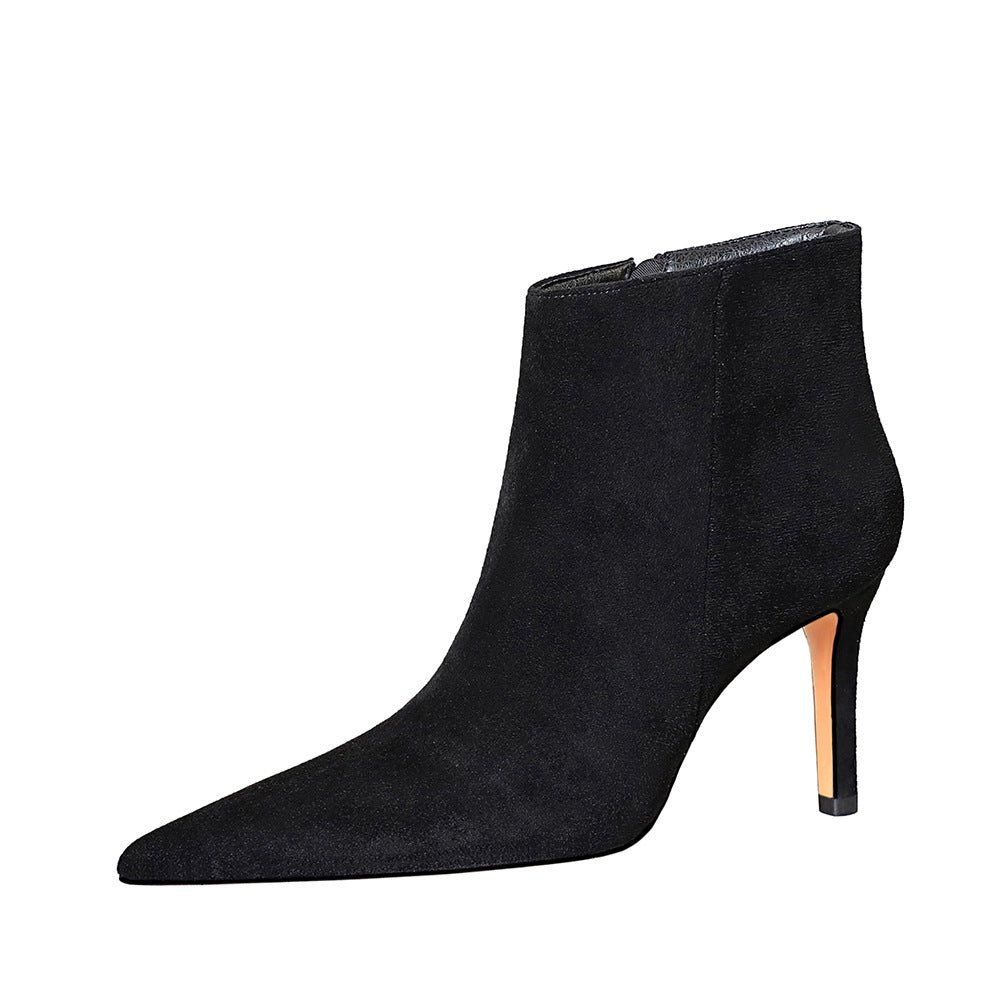 BIG TREE SHOES 7286-2 European and American Style Fashion Simple Sexy Nightclubs Thinner Suede Pointed-Toe Side Zip Winter High Heel Ankle Boots