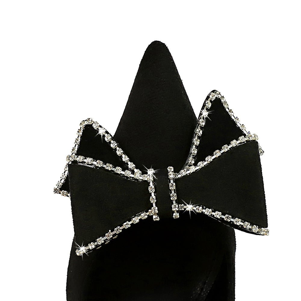 Big Tree Shoes 9511-H7 European and American Sexy Nightclub Super High Heel Women’s Shoes Stiletto Suede Shallow Mouth Pointed Toe Rhinestone Bow Pumps
