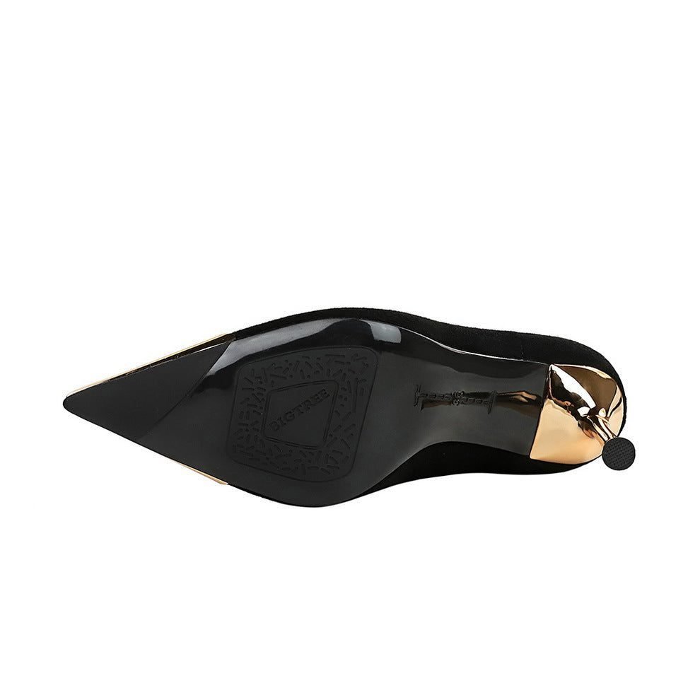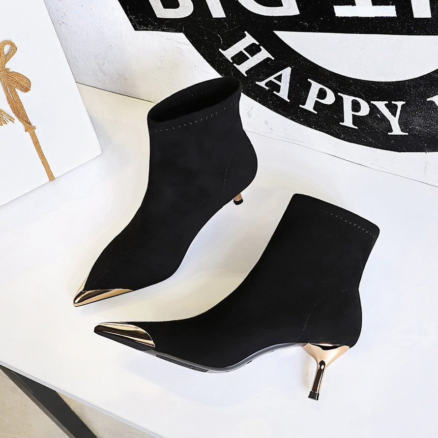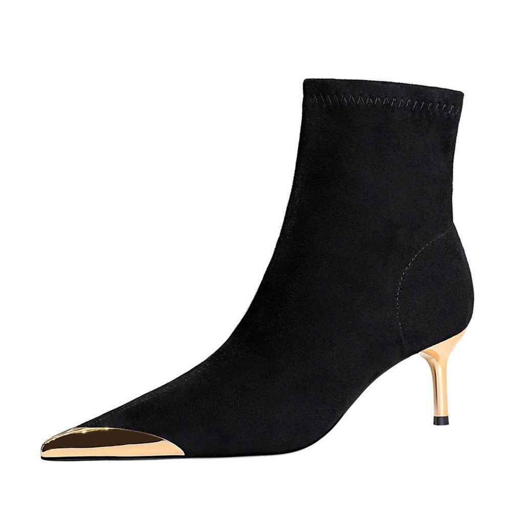 BIGTREE 319-A12 European and American style banquet light luxury women’s boots thin pedicure short boots suede metal head winter short boots