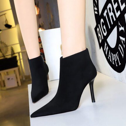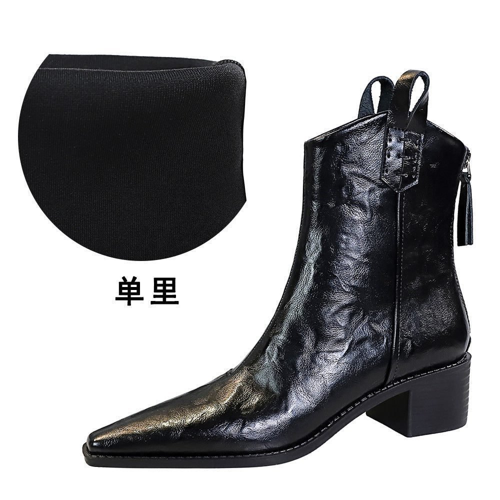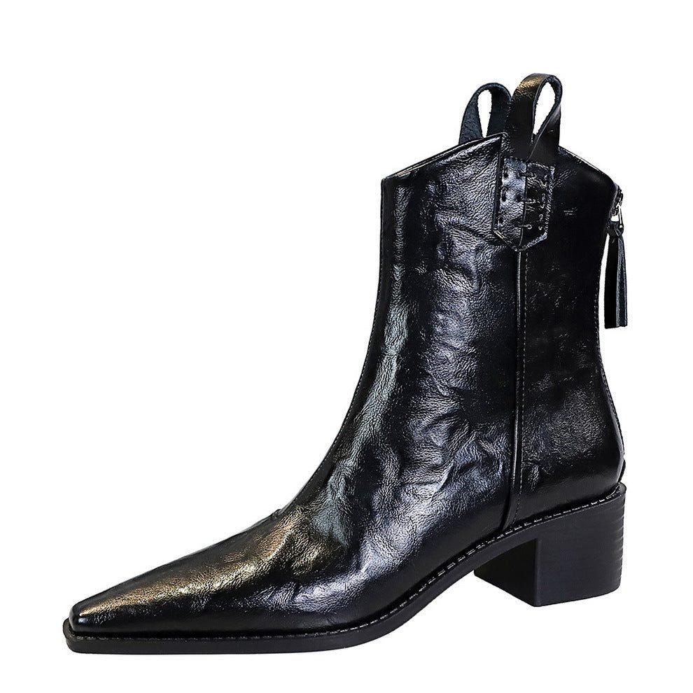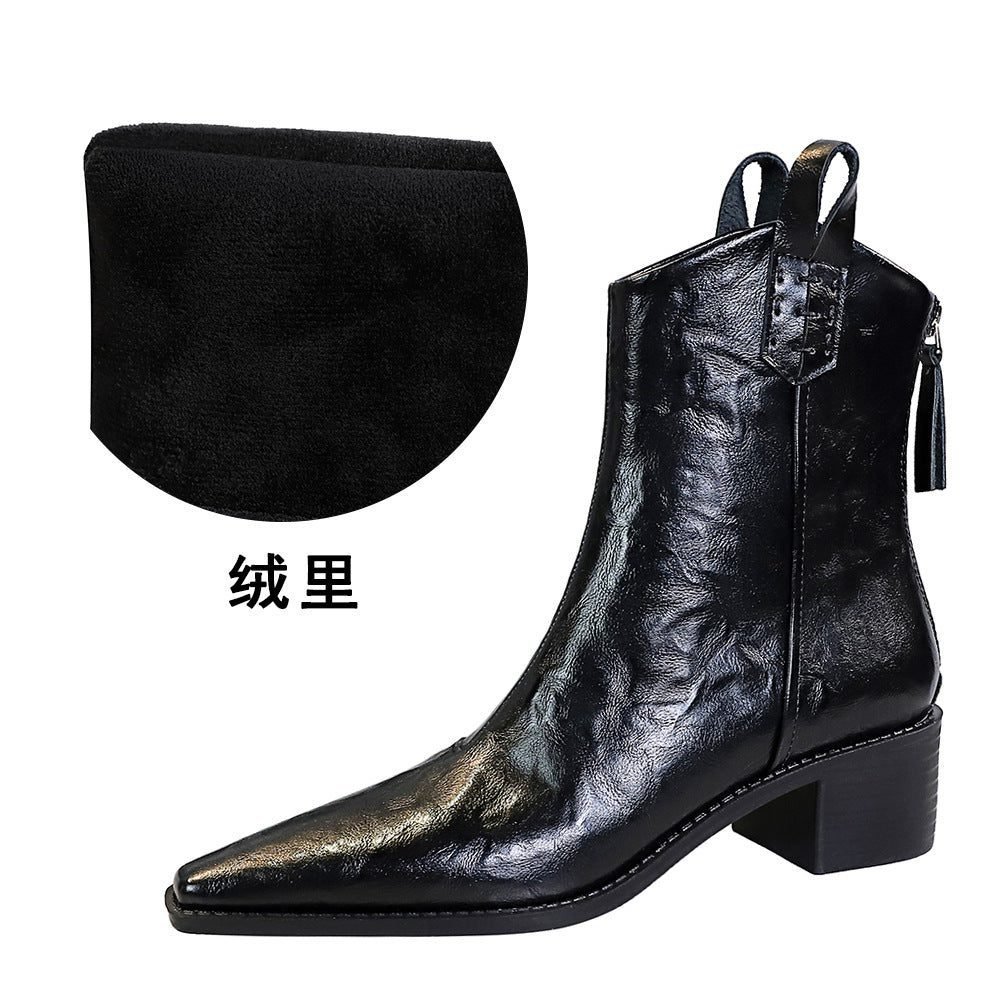 BIGTREE 578-10 Retro hand-scratched European and American winter short boots women’s boots thick heel middle heel pointed knight boots short boots