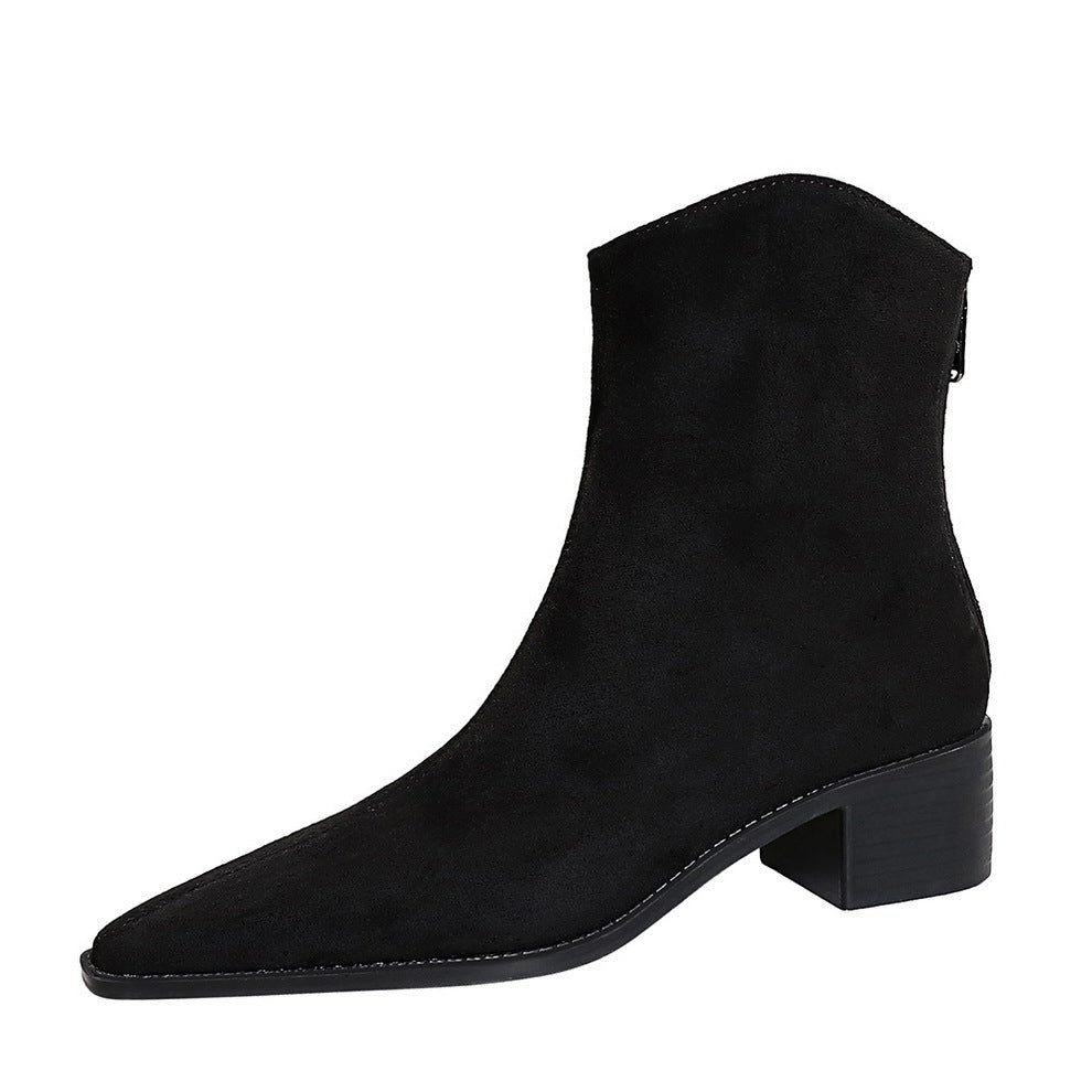 BIGTREE 578-3 European and American style fashion simple winter versatile thick heel middle heel pointed suede fashion short boots short women’s boots