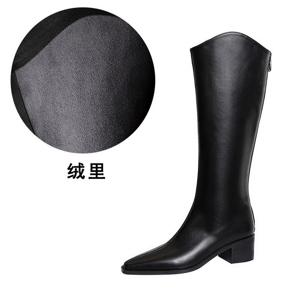 Popular elements: European and American style fashion simple thick heel medium heel winter versatile high boots retro
