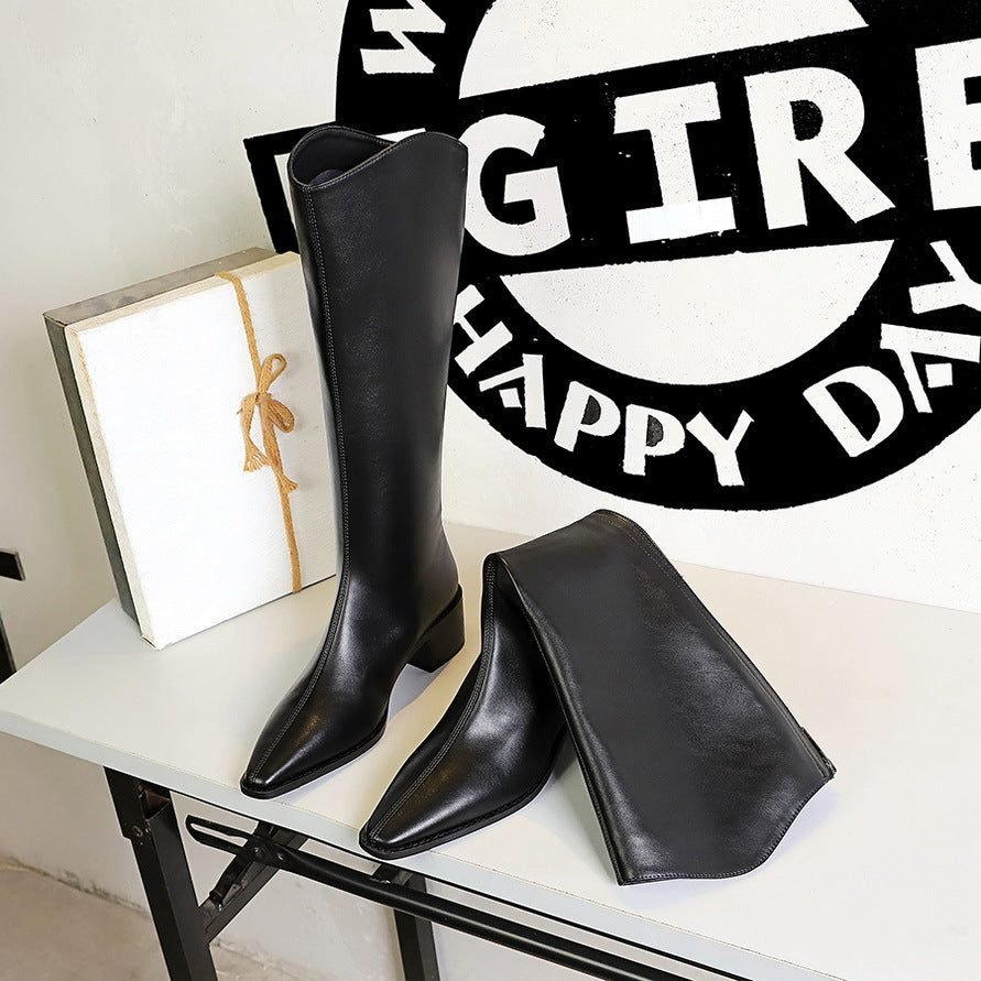 BIGTREE 578-8 European and American style fashion simple high top women’s boots thick heel middle heel winter versatile high boots vintage knight boots