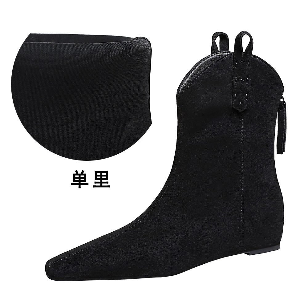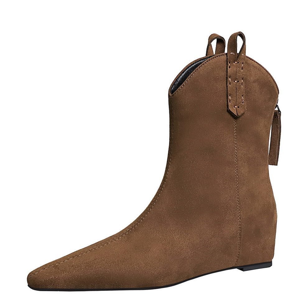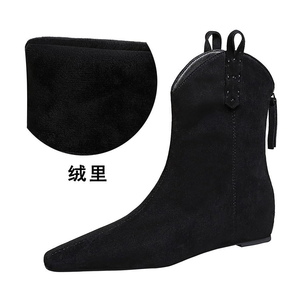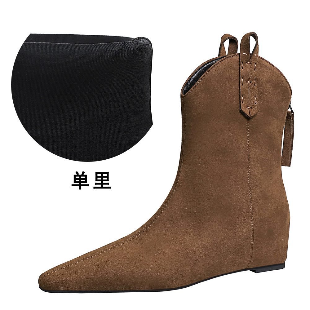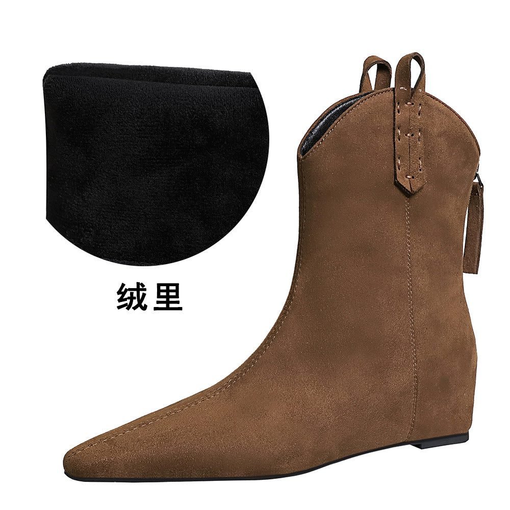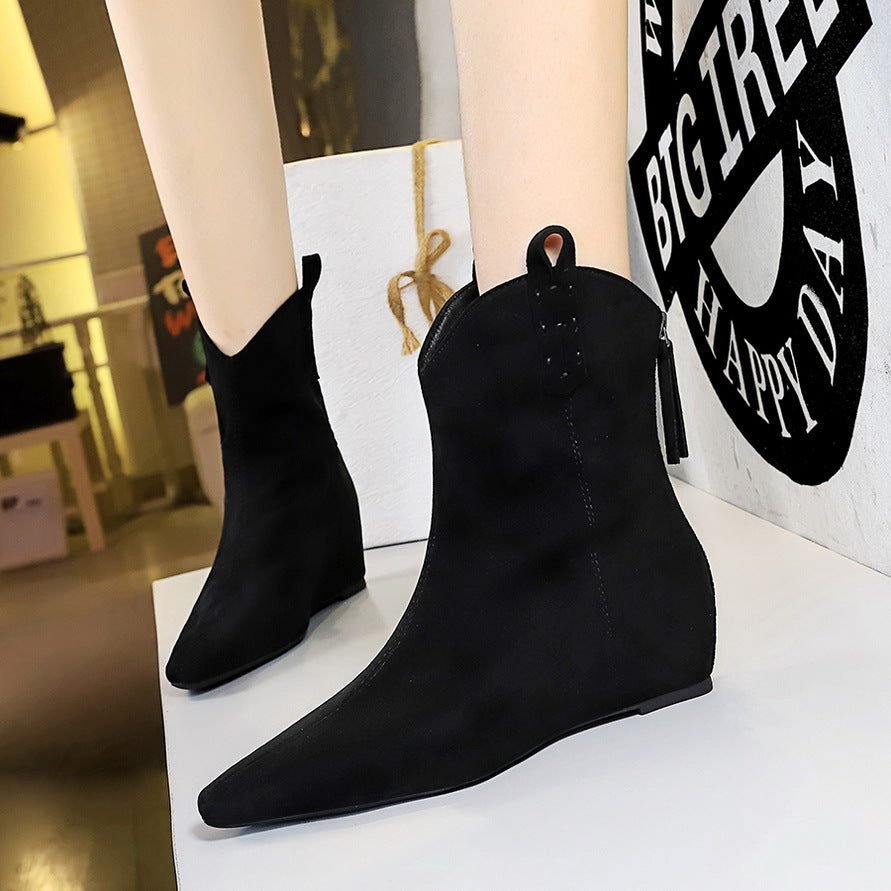 BIGTREE 6632-11 Retro Korean version inner height-increasing short women’s boots pedicure and thin versatile suede rear zipper winter short boots