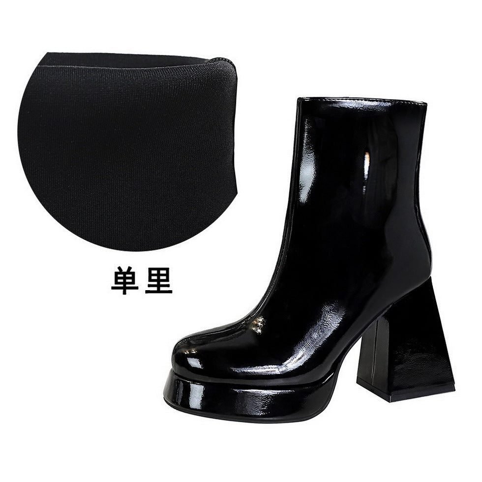 Popular elements:European and American style Retro Glossy patent leather fashion trend Retro side zipper thick heel Super high heel