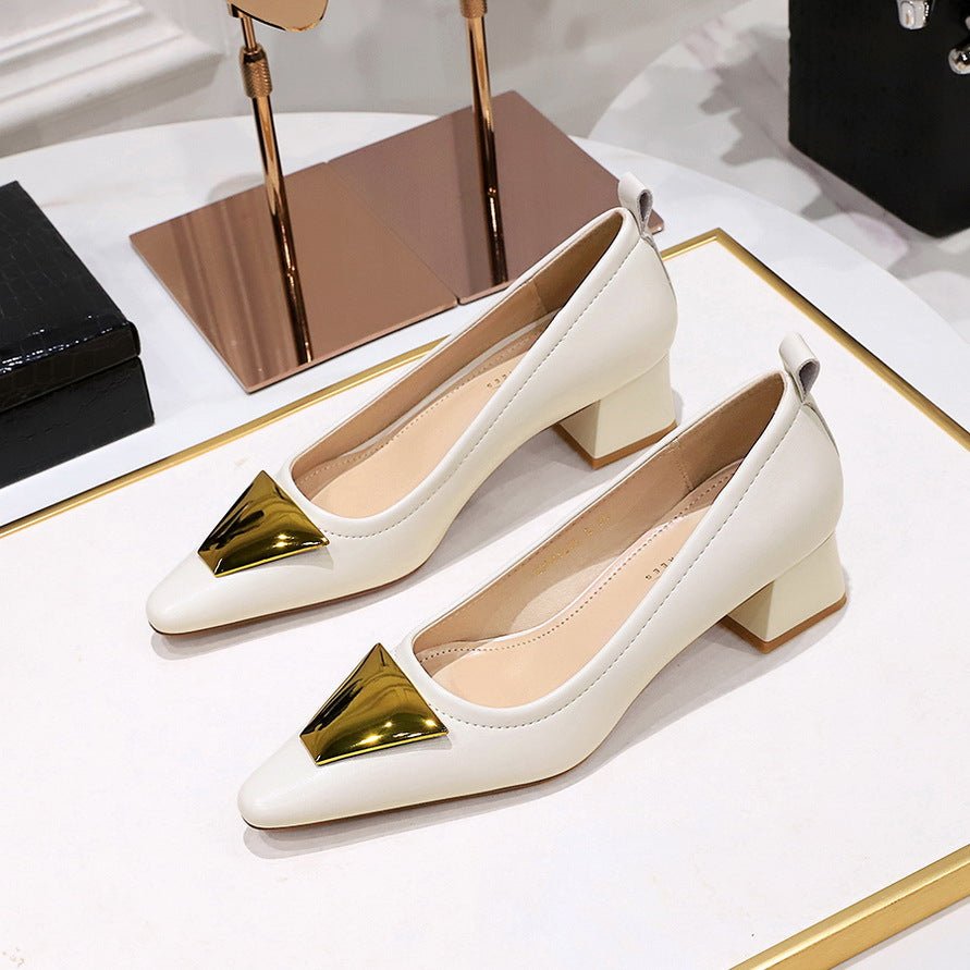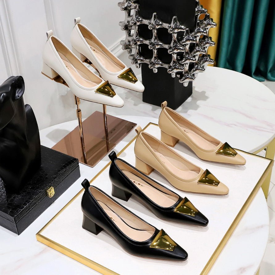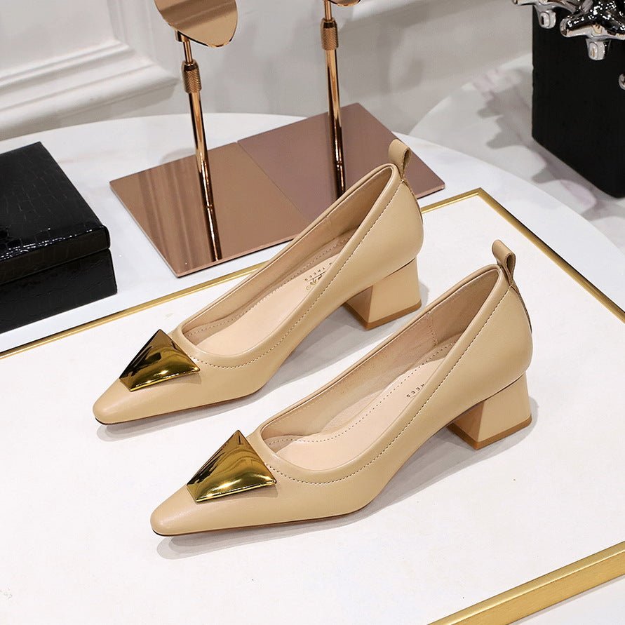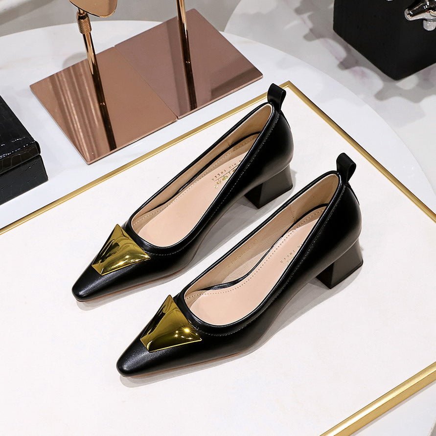 Popular Elements: Retro Style Fashion Chunky Very Mid Very Metal Decoration Pumps Professional Ol Commuter Women’s Shoes