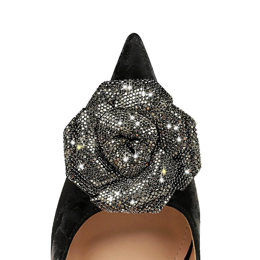 BIGTREE SHOES 18249-A3h52 National Style Women’s Shoes Banquet High Heels Stiletto Low-Cut Pointed Toe Rhinestone Flower Rose Pumps