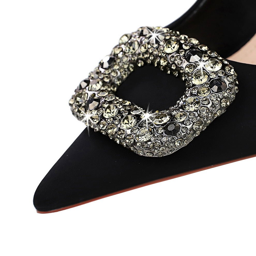 Bigtree Shoes 18249-ak83 European and American Style Banquet Women’s Shoes Stiletto Heel Shallow Mouth Pointed Toe Satin Metal Rhinestone Buckle Women’s Shoes