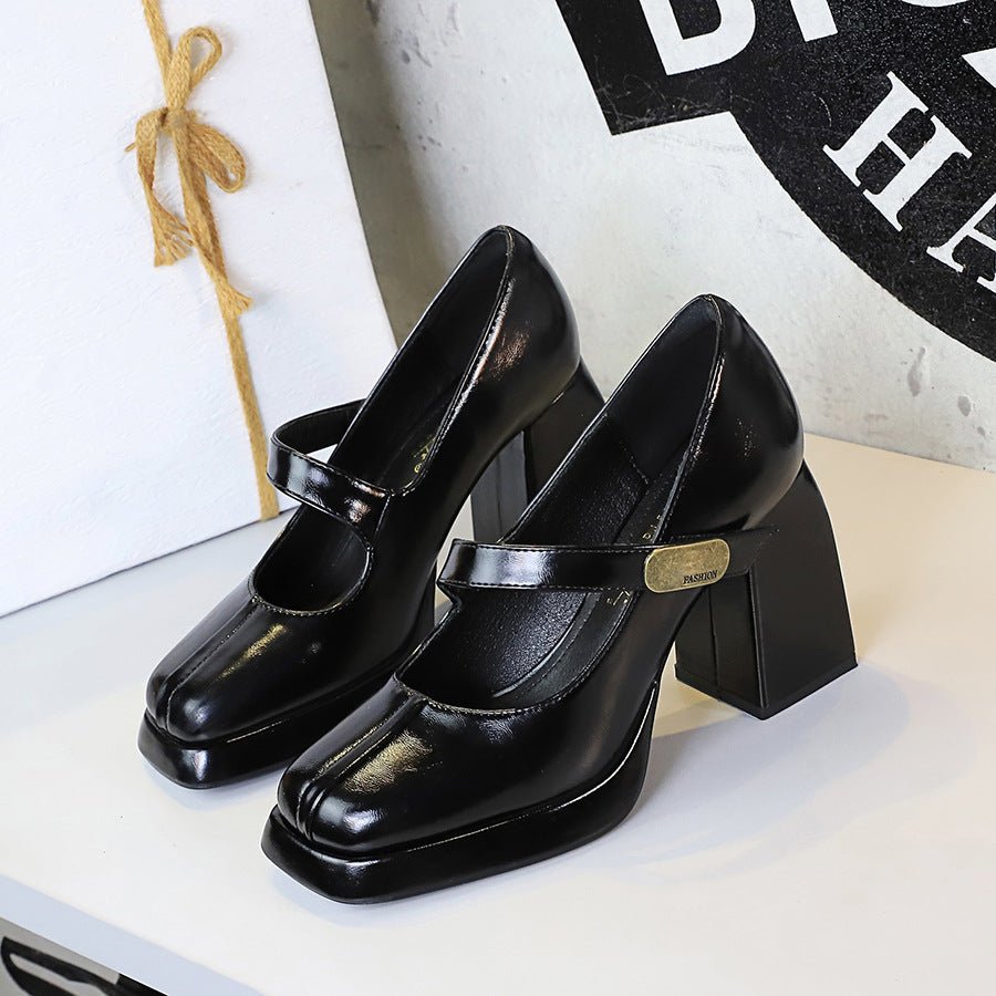 BIGTREE SHOES 1868-k93 Retro Style European and American High Heels Women’s Shoes Chunky Heel High Heel Waterproof Platform Metal Buckle Ankle-Strap Shoes