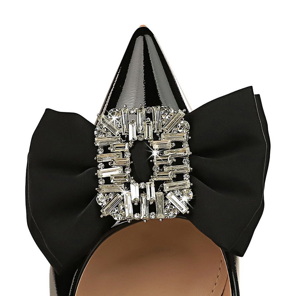 Popular Elements: European and American Style Fashion Light Luxury Banquet Mid Heel Rhinestone Buckle Bow