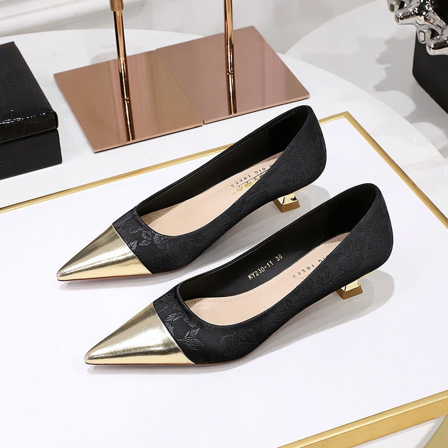 Popular Elements:Banquet National Style Women’s Shoes Metal Very Low Very Stitching Metal Pointed Spring and Autumn